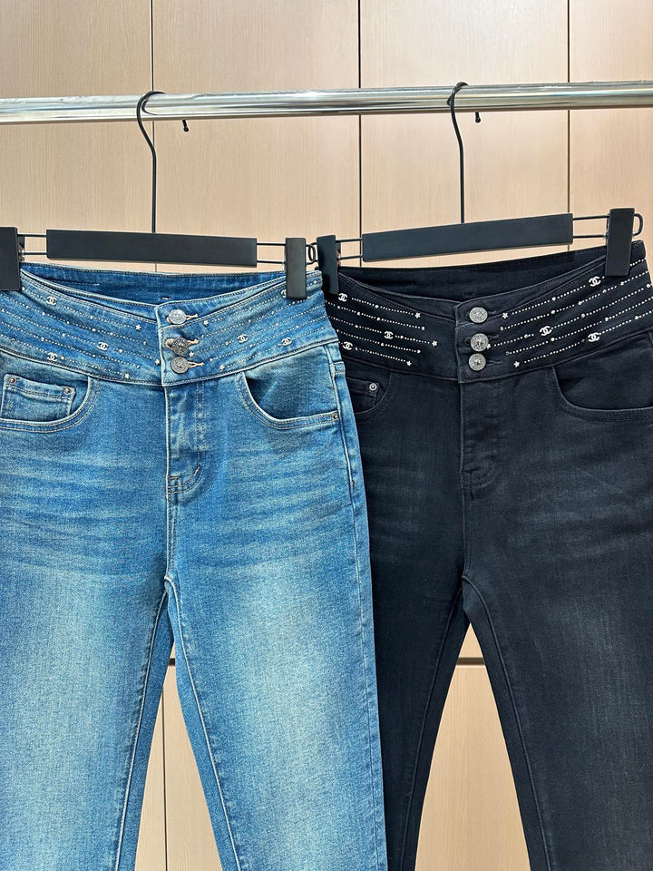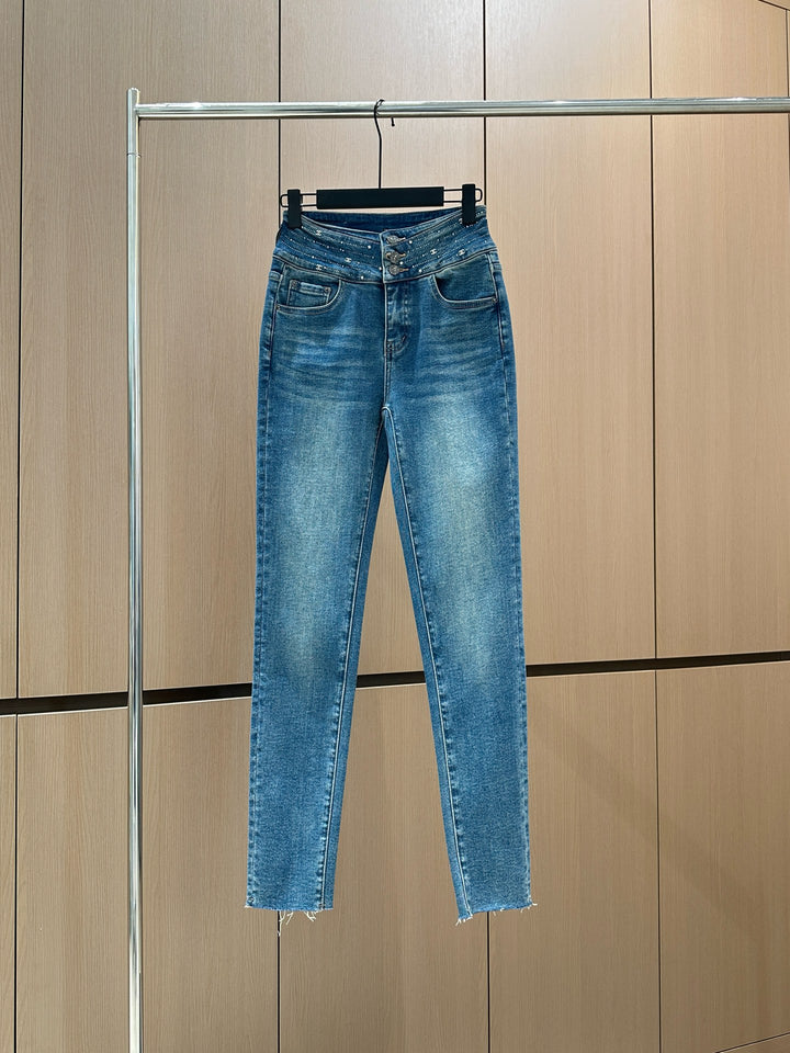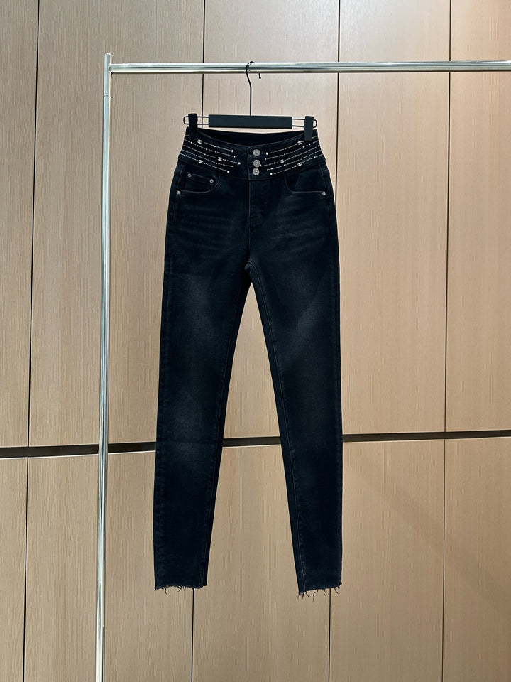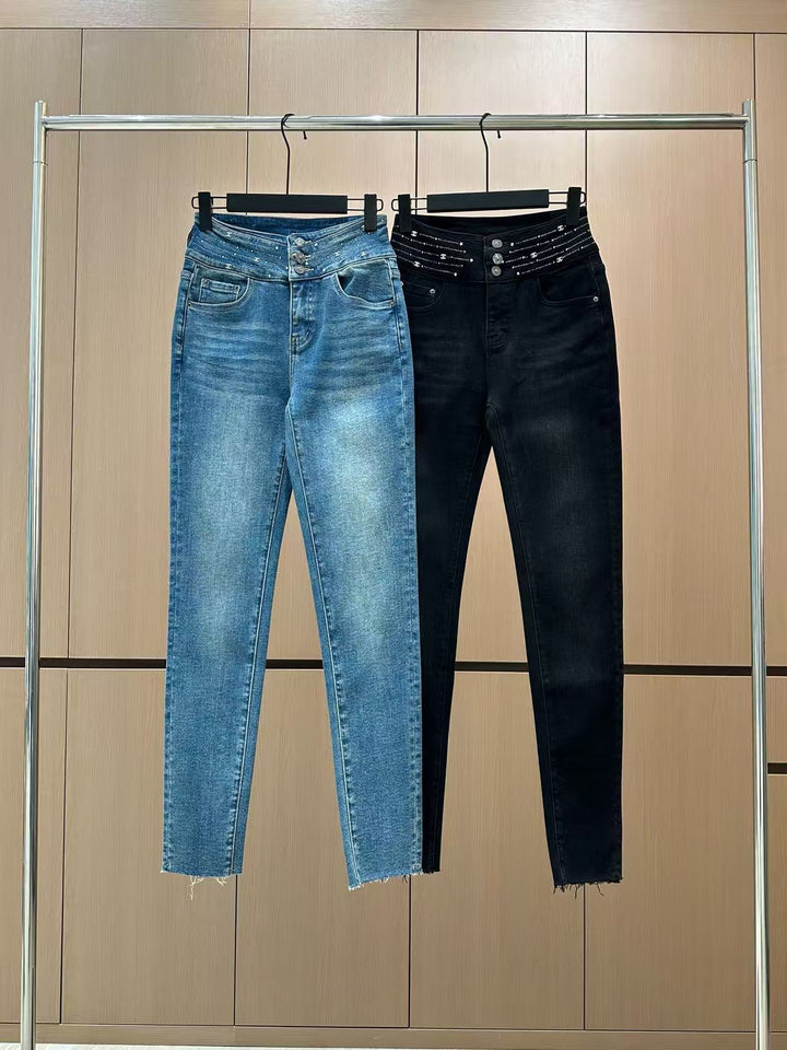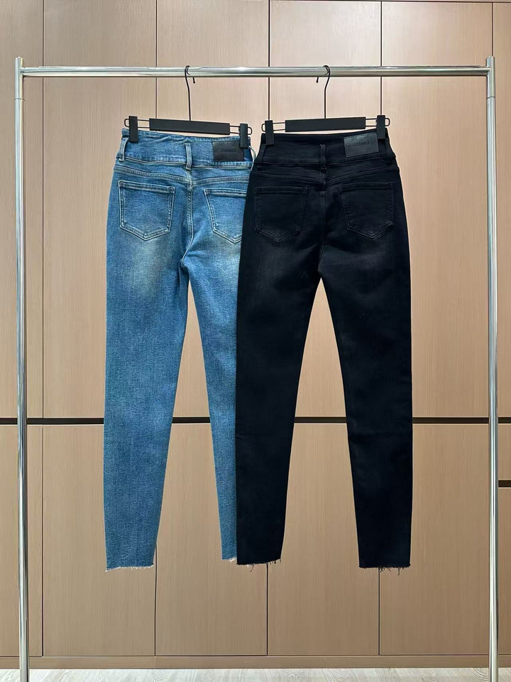 25 new fringed diamond elastic brushed small leg jeans