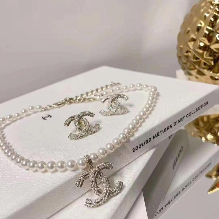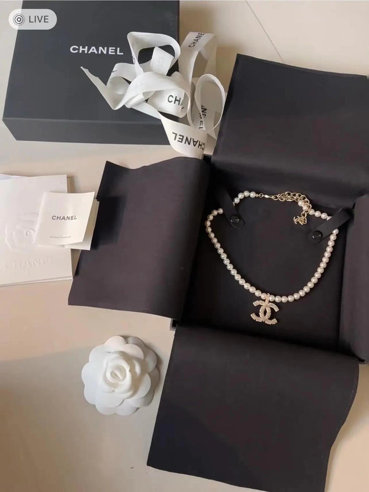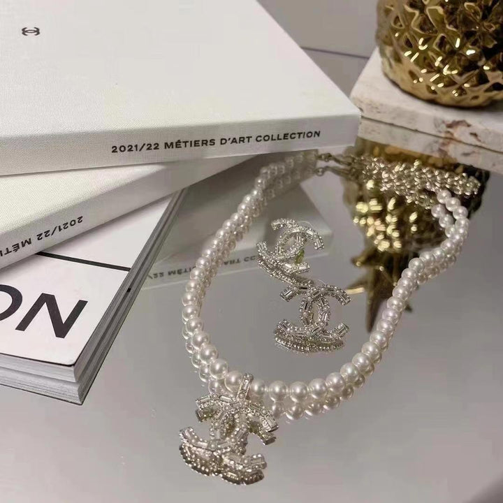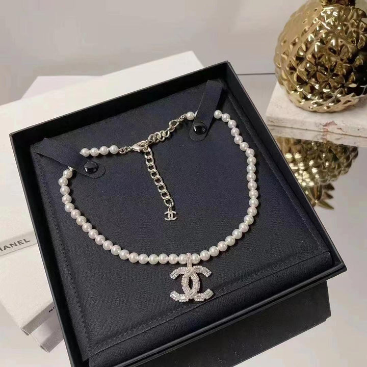 Neue Perlen- und Diamant-Logo-Halskette