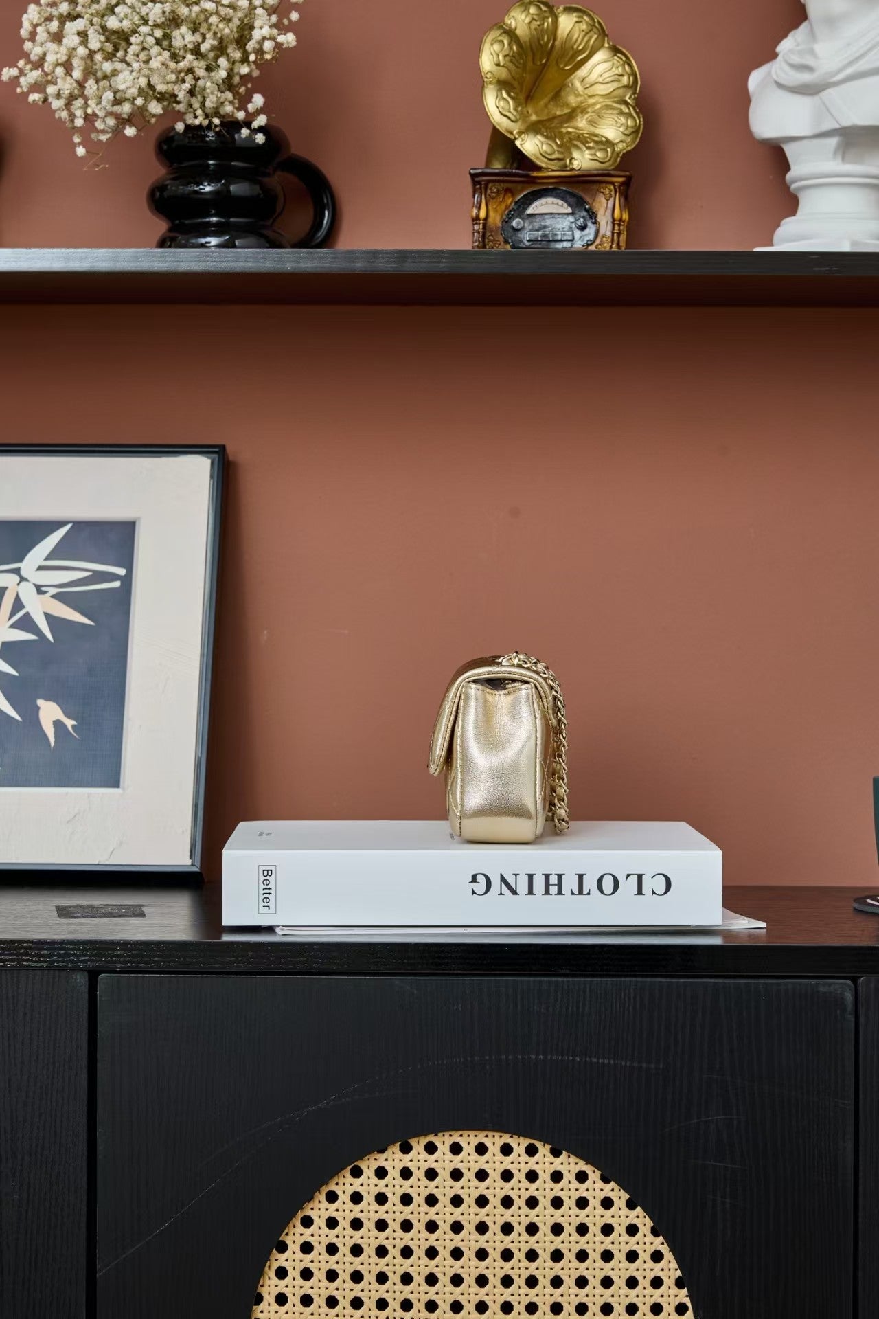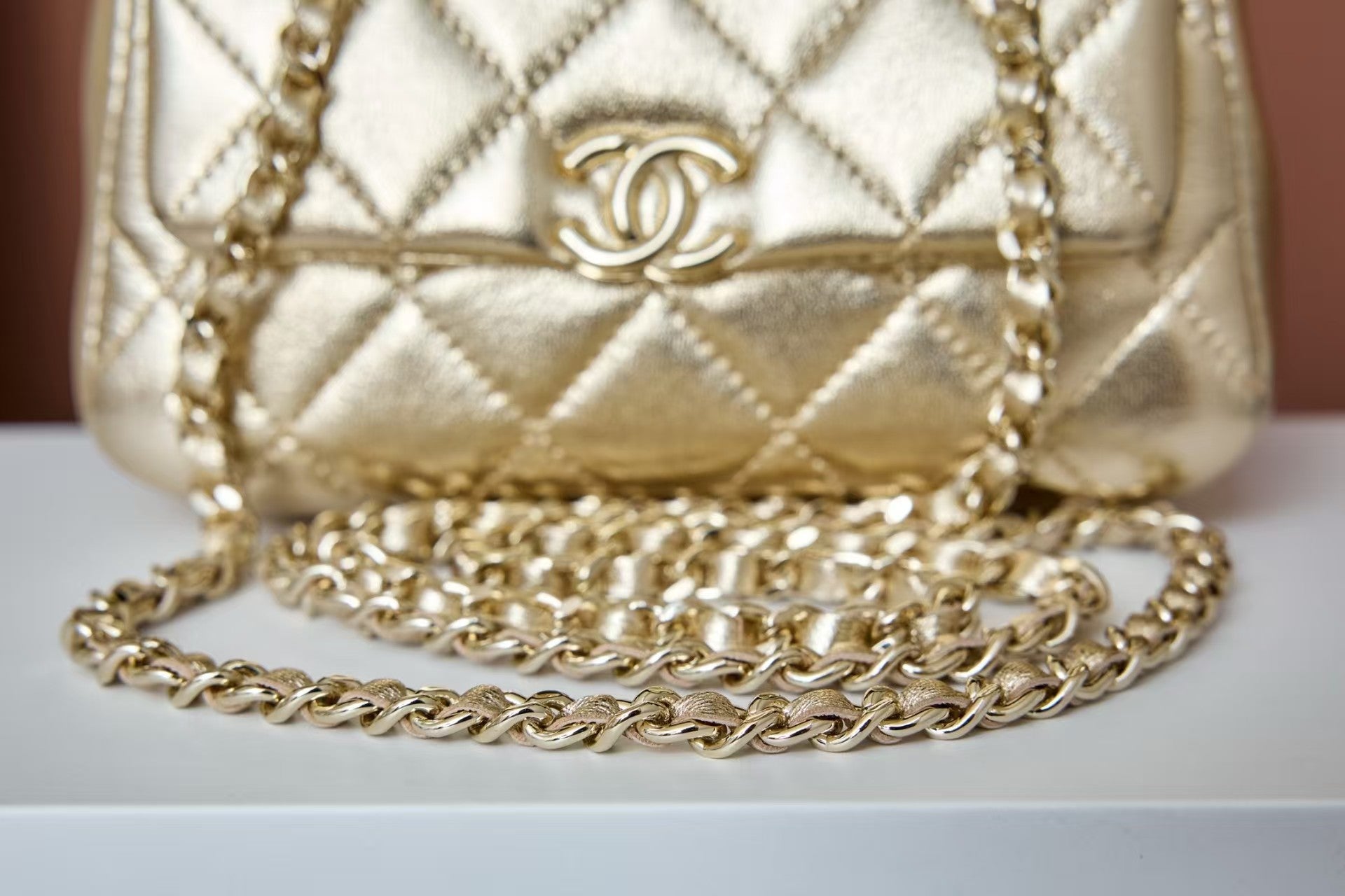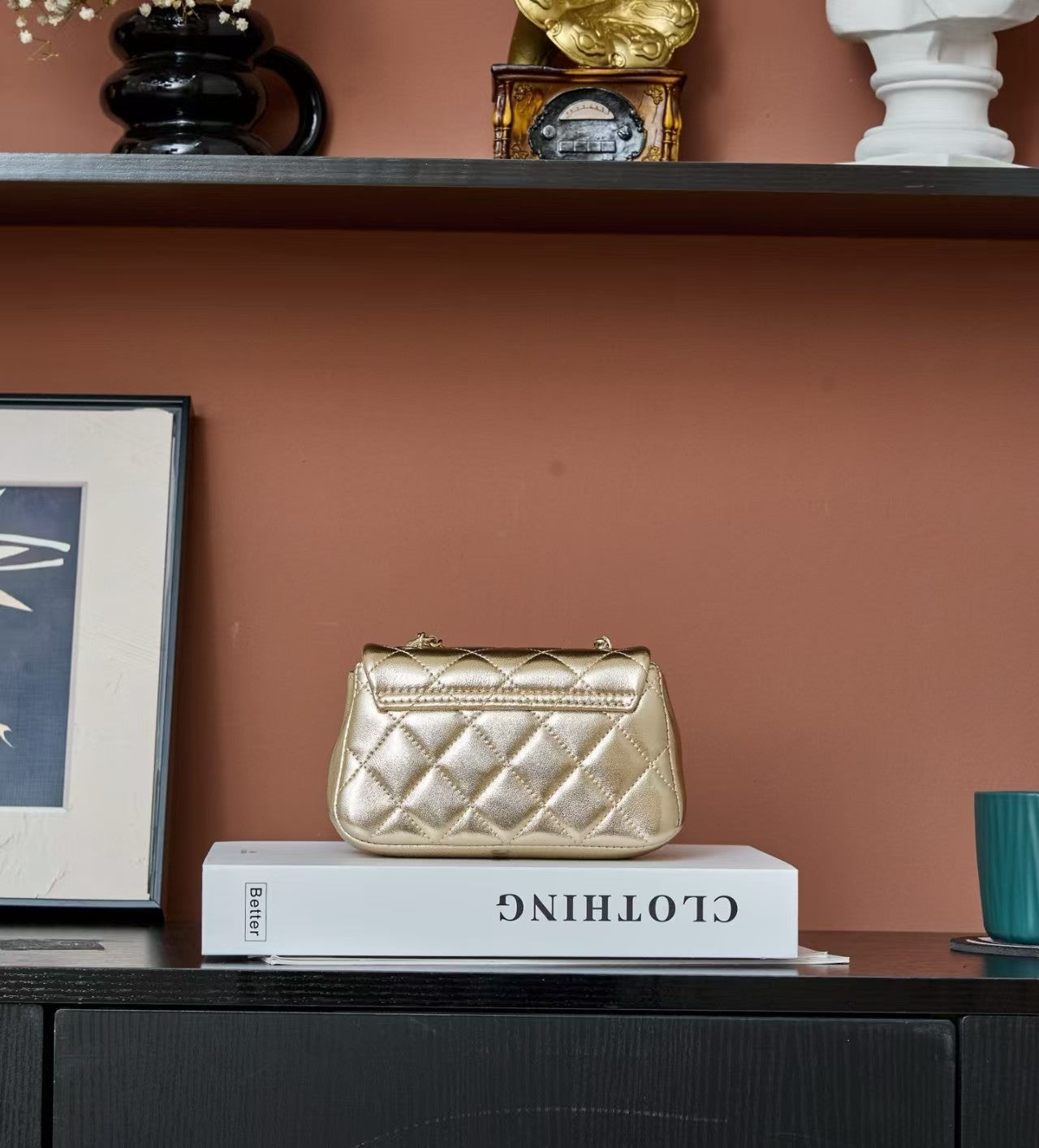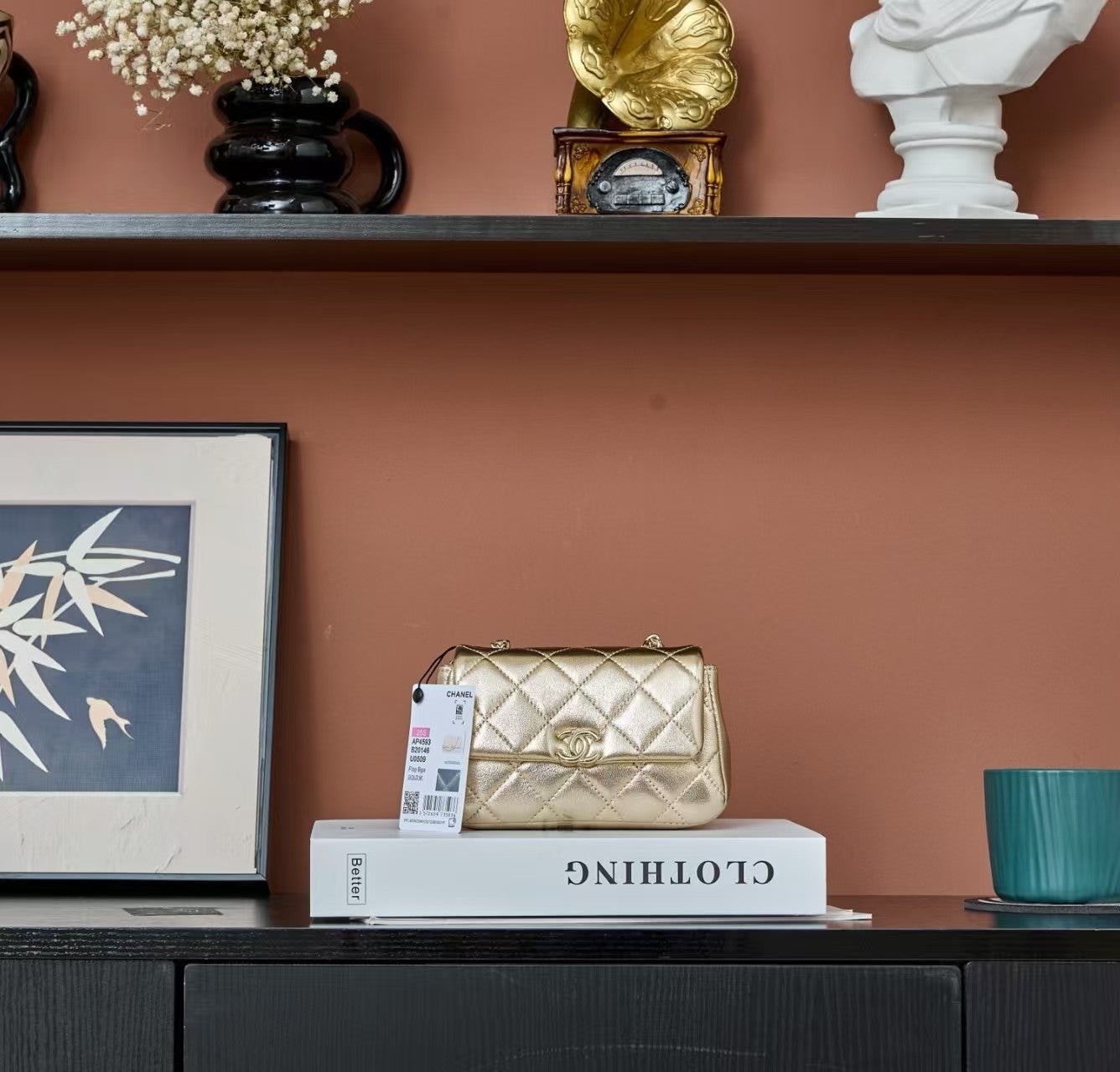 The CF mini phone bag (AP4593) exudes a high-end feel and offers excellent value. It's adorable, made of lambskin with a light gold chain, exquisite and elegant—simply gorgeous! Dimensions: 10×16.5×5cm