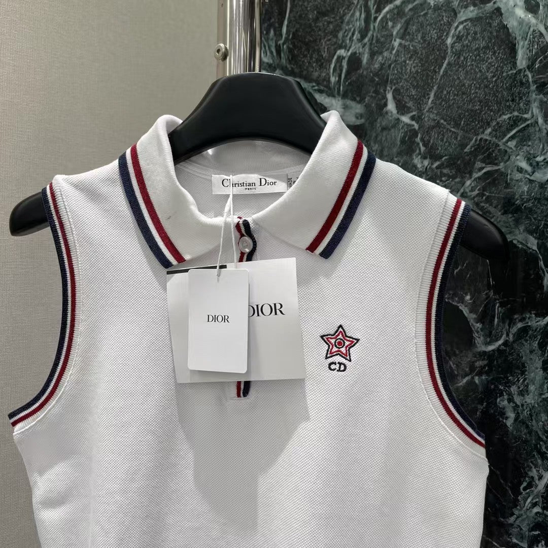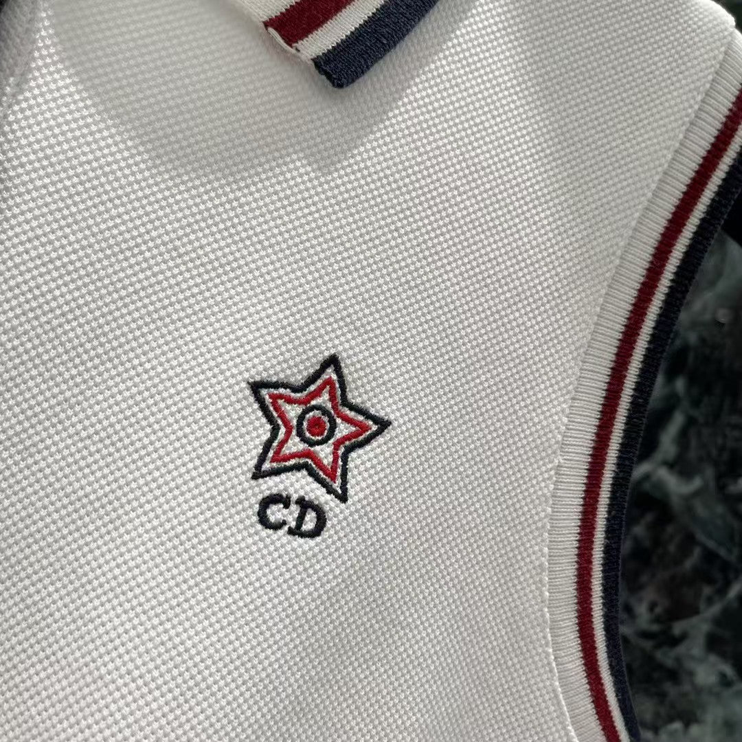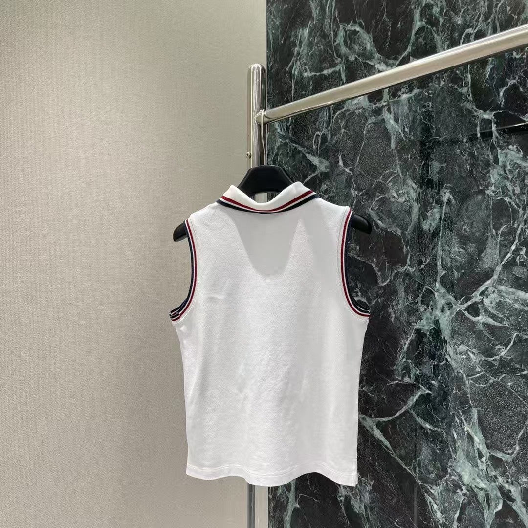 25 new summer styles, embroidered lapel buttoned vest, with playful and age-reducing olo collar and contrasting color edge design, simple and adds a touch of vitality and high-end, the whole piece is very summery, youthful and energetic