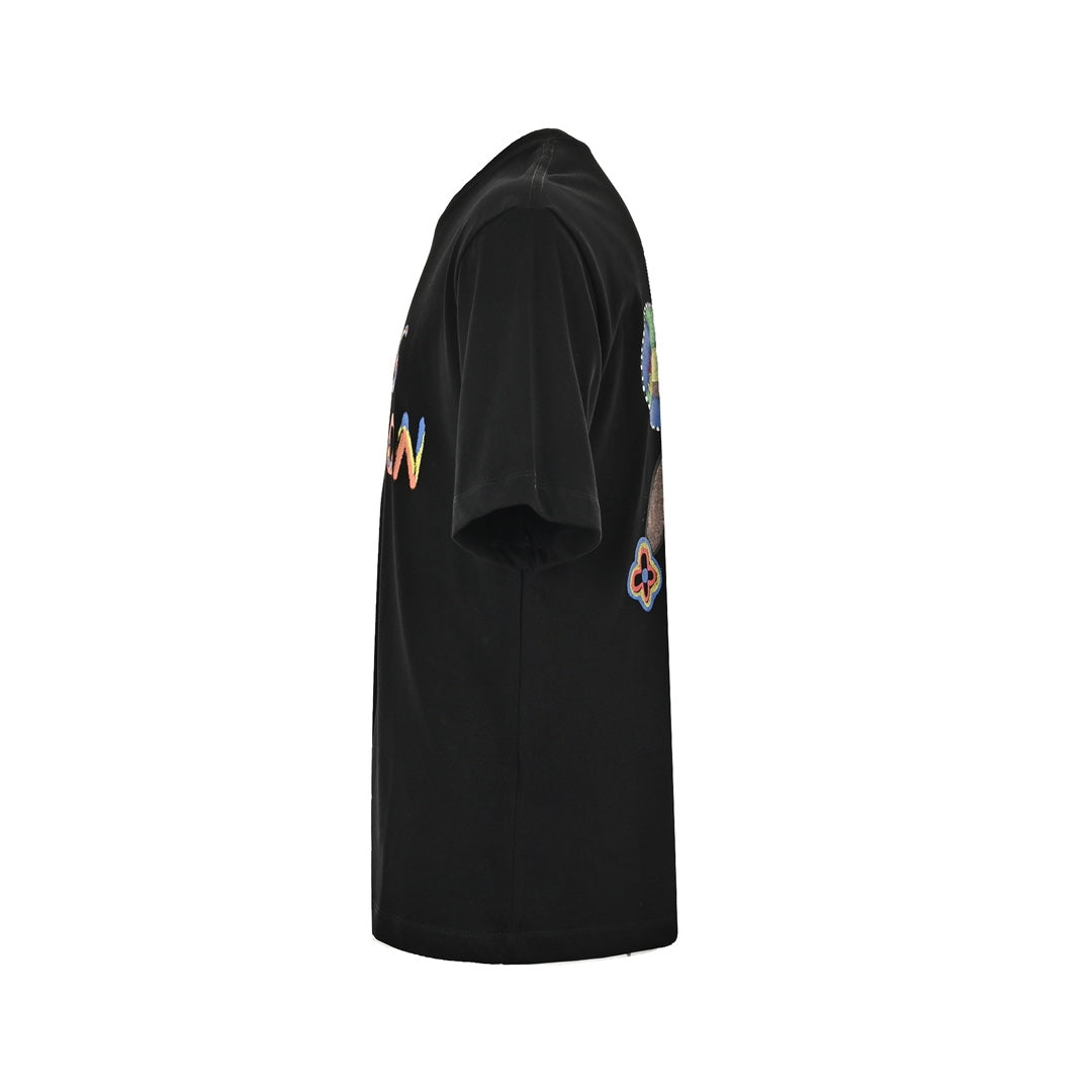 Classic and latest colorful three-dimensional hand-painted craftsmanship, high recognition, noble and generous upper body, same style for men and women ~ The fabric is made of 230g 26-count 100% Xinjiang cotton double yarn compact siro spun, it will not shrink or deform after washing, the texture is excellent, and the hand feels thick! The neckline is carefully cut by hand, and the upper body is smooth, close-fitting and shapely. The neckline thread is customized with DuPont blended elastic thread, which will not deform after being washed and worn for a long time. Each step of the process is compact and interlocking, with strict requirements on craftsmanship and technology. The wearing comfort and drape are particularly good. Needless to say, the matching, there is no sense of restraint at all when worn, and the overall comfort level is very high!