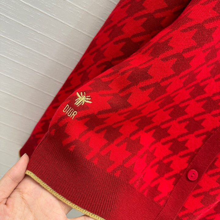 Strickjacke mit Goldborte und Hahnentrittmuster