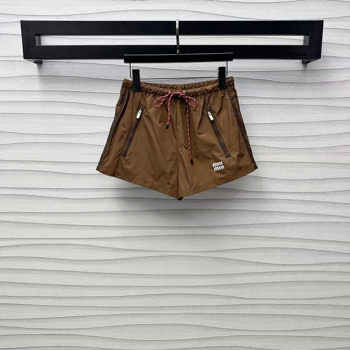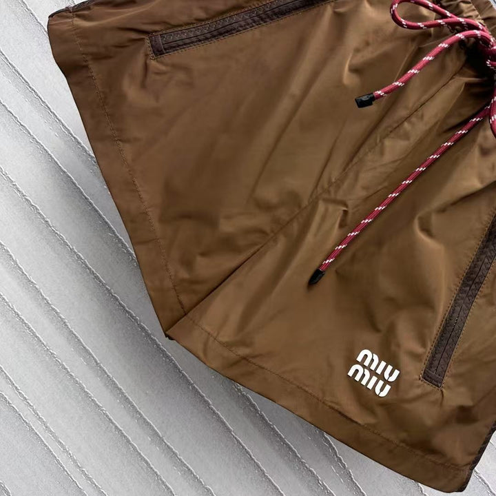 Nylon-Kordelzug, individuell anpassbar. Importiertes, dünnes Nylonmaterial, atmungsaktiv, bequem und stilvoll. Verziert mit dem Buchstabenlogo am Saum, um den Markenauftritt zu unterstreichen. Elastischer Bund mit farblich abgesetztem Kordelzug für eine vorteilhafte Silhouette. Hohe Taille, A-Linien-Schnitt. Kann mit Teilen der gleichen Serie kombiniert werden, um ein stilvolles und jugendliches Outfit zu kreieren. Serienentwicklung. Wählen Sie nach Belieben.