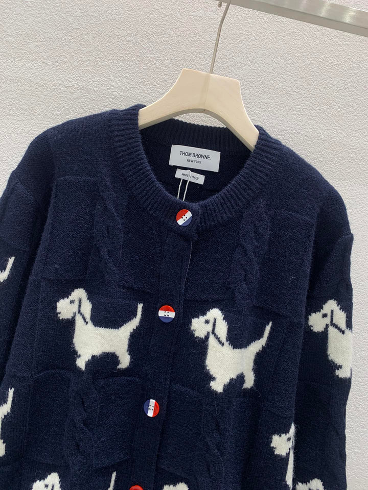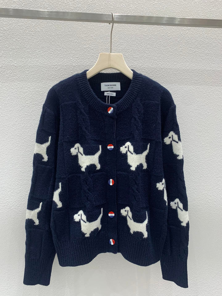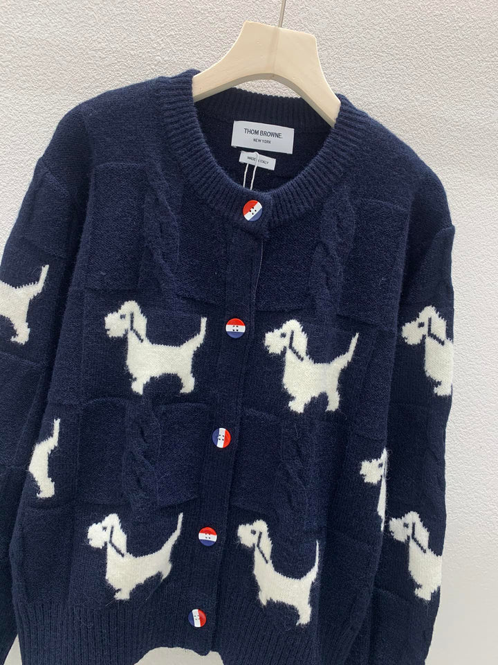 Strickjacke mit Welpenmuster und Rundhalsausschnitt