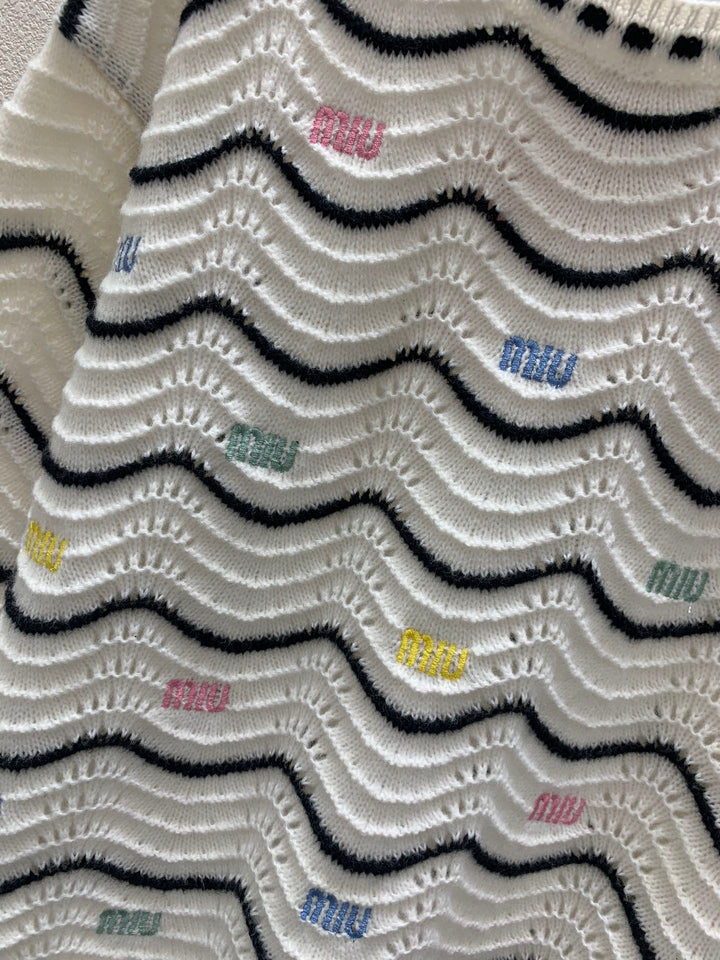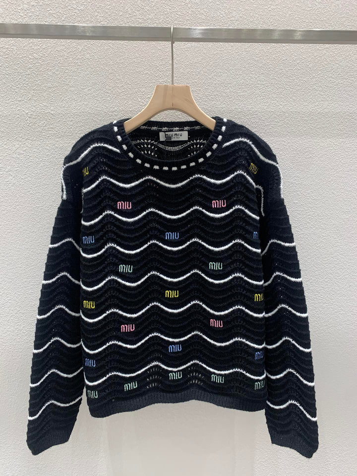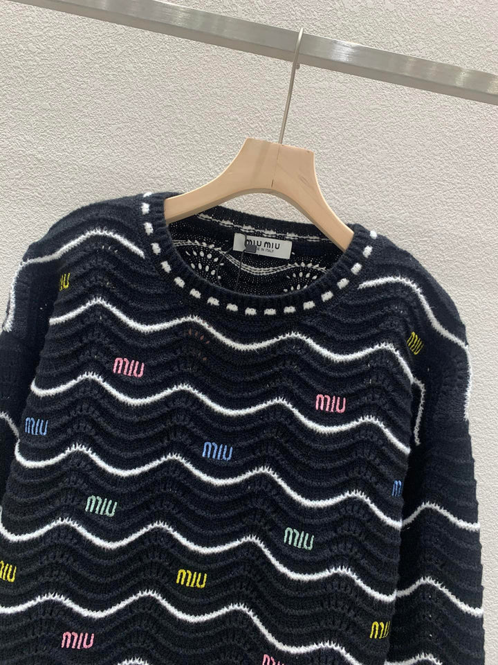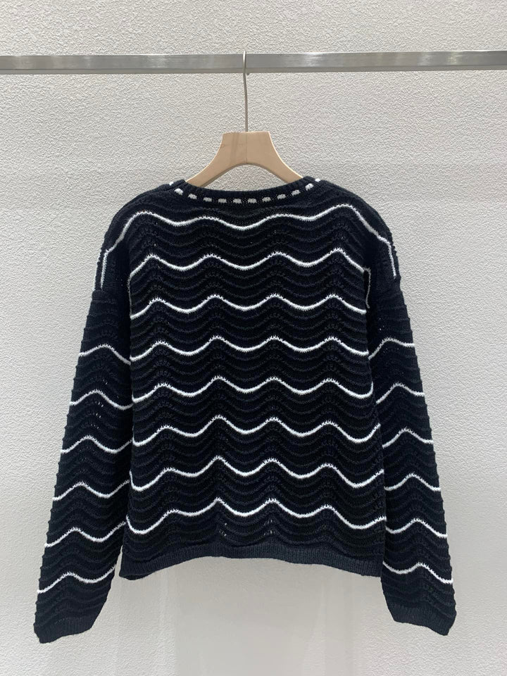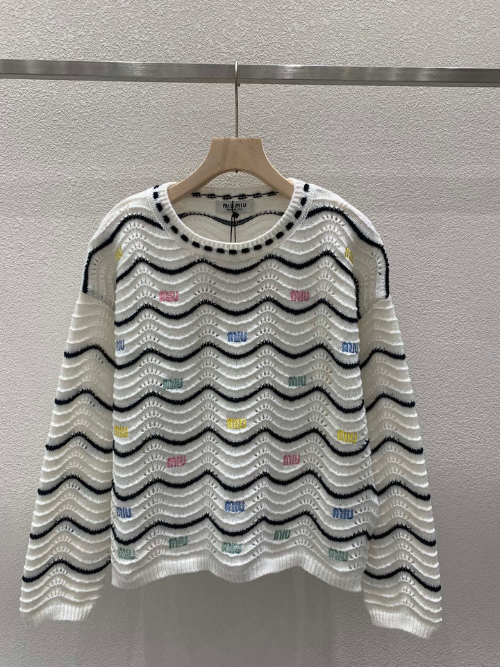Gestrickter Pullover mit Rundhalsausschnitt 🆕 〰️ Gestreiftes Patchwork-Design Buchstabenlogo, bunte Stickerei-Dekoration Hohles Design Einfach und modisch, alltagstauglich, vielseitig einsetzbar, Größe S/M