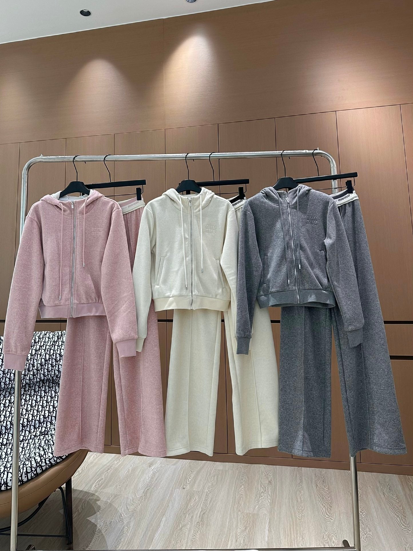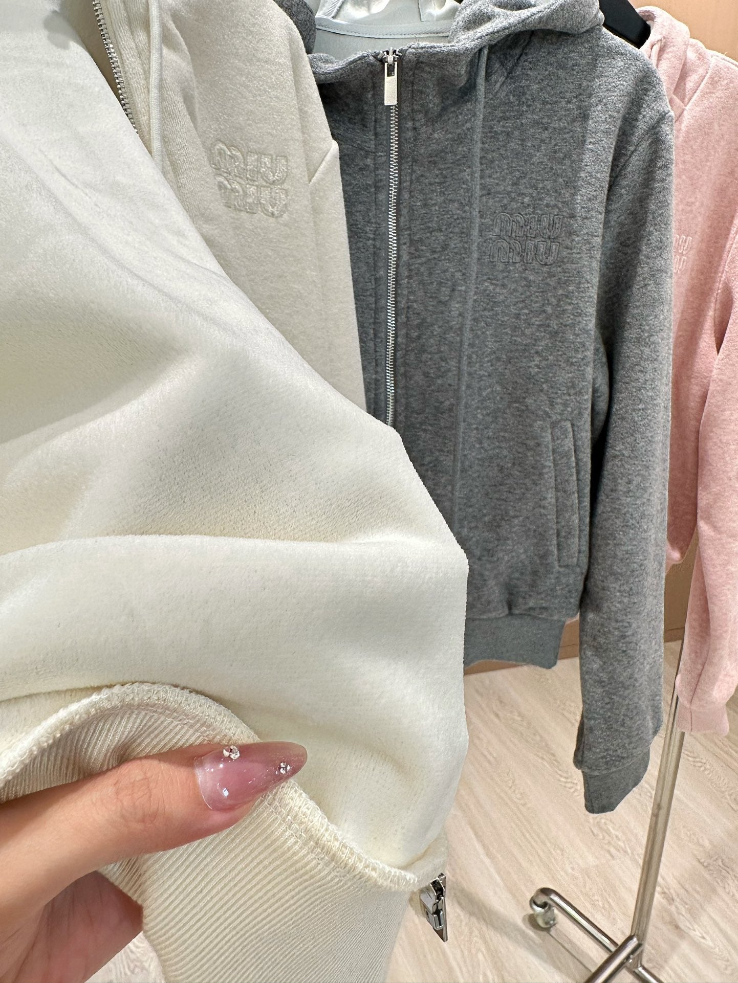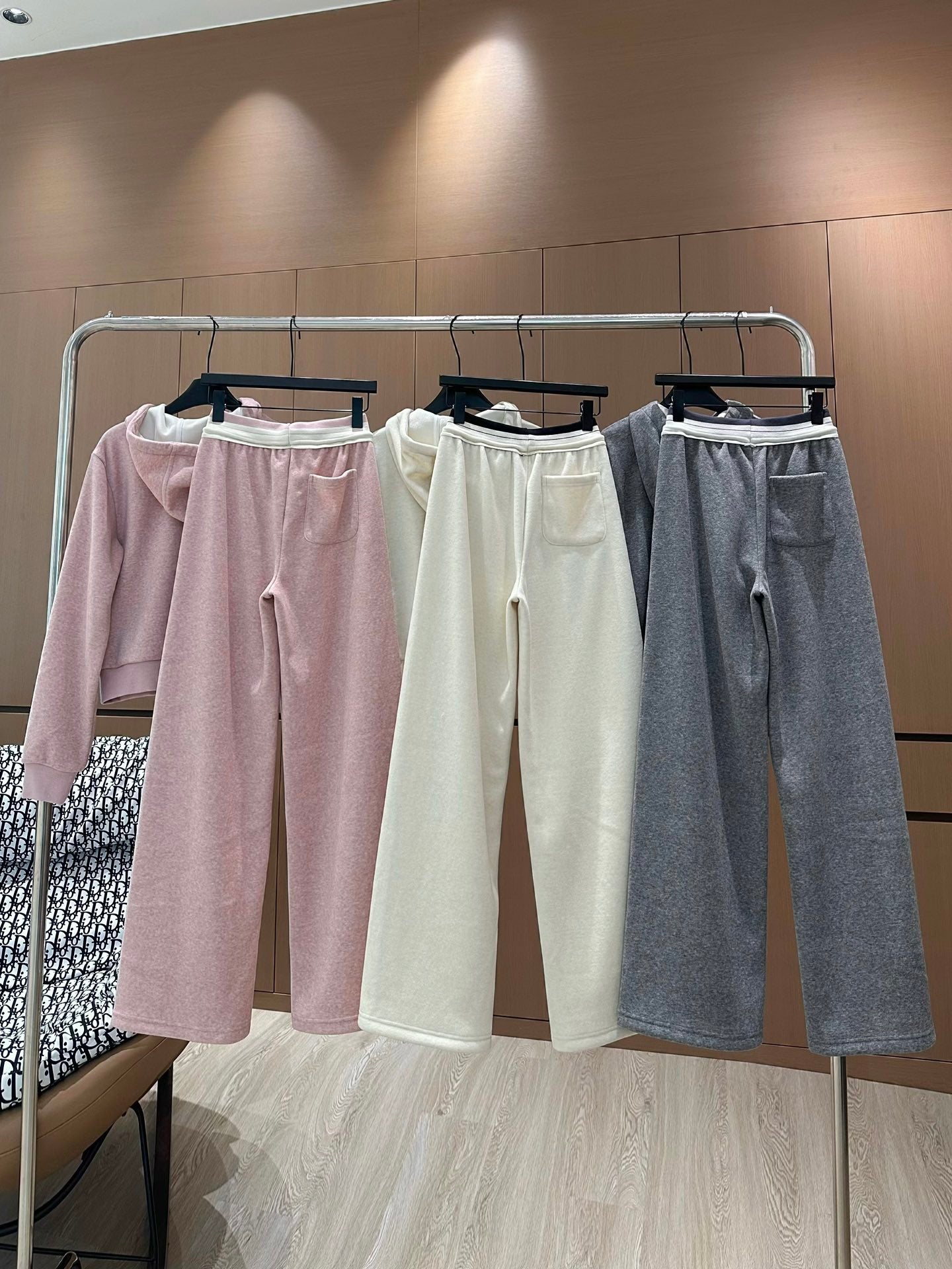 Winter heavy-duty letter embroidered long-sleeved zipper hooded jacket + high-waist elastic waist drawstring casual wide-leg pants two-piece set