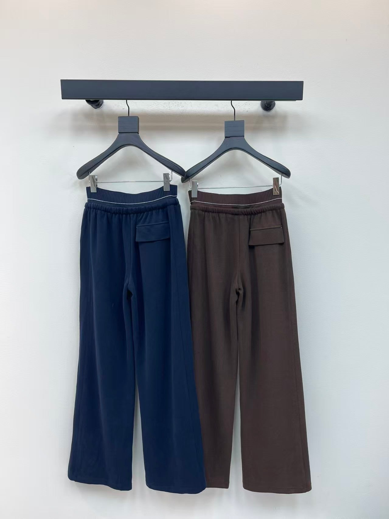 25 New Early Autumn Drawstring Wide-leg Trousers Customized YB Twill Cotton Material, the fabric is soft and comfortable, drapes smoothly and stylishly, high-waisted drawstring wide-leg trousers, use close-fitting elastic webbing to decorate the waist, and match with striped lines to create a casual effect, the style is relaxed and fashionable, the iconic letter logo on the waistband instantly enhances the brand style, easy to control, the three-dimensional edge on the outside of the trouser legs outlines the contour, matched with wide-leg trousers, accommodating and modifying the leg shape, showing the style, wearing a full high street fashion style