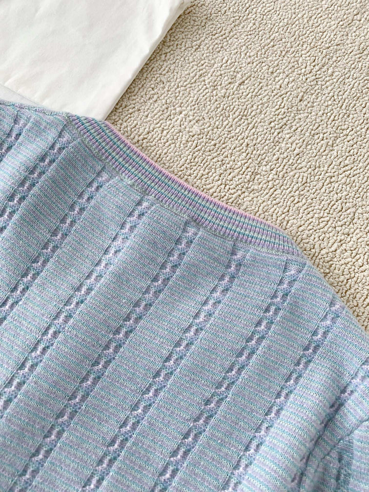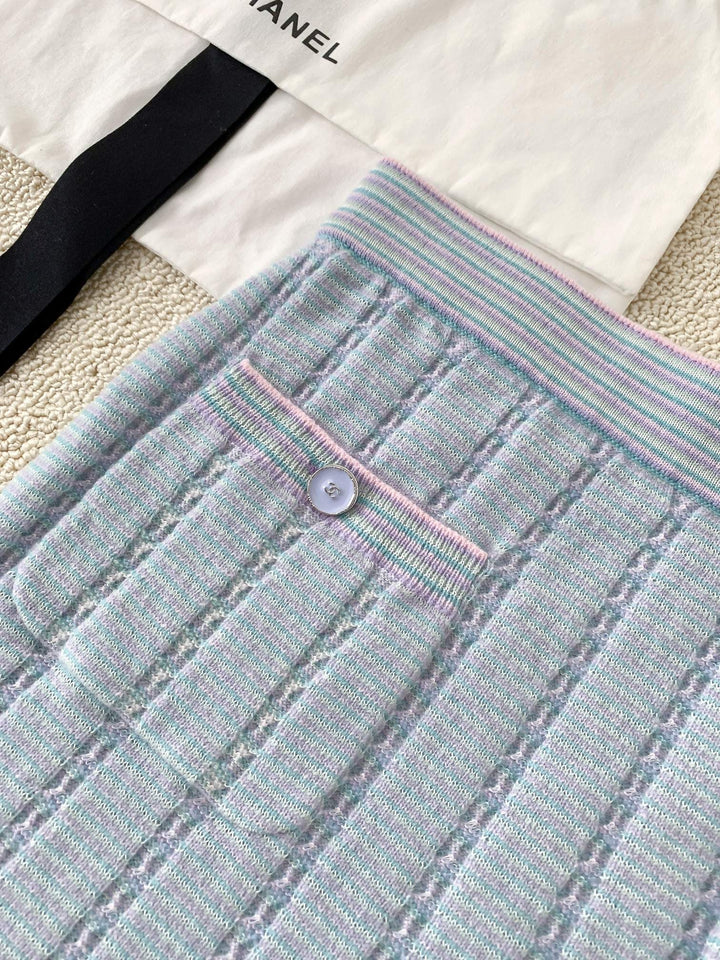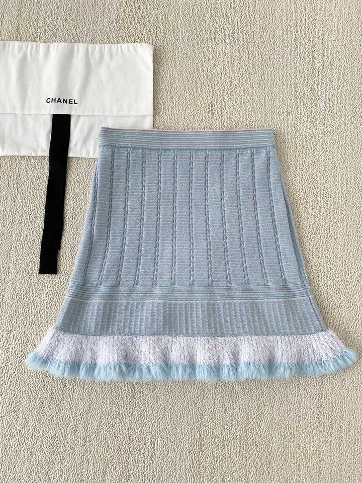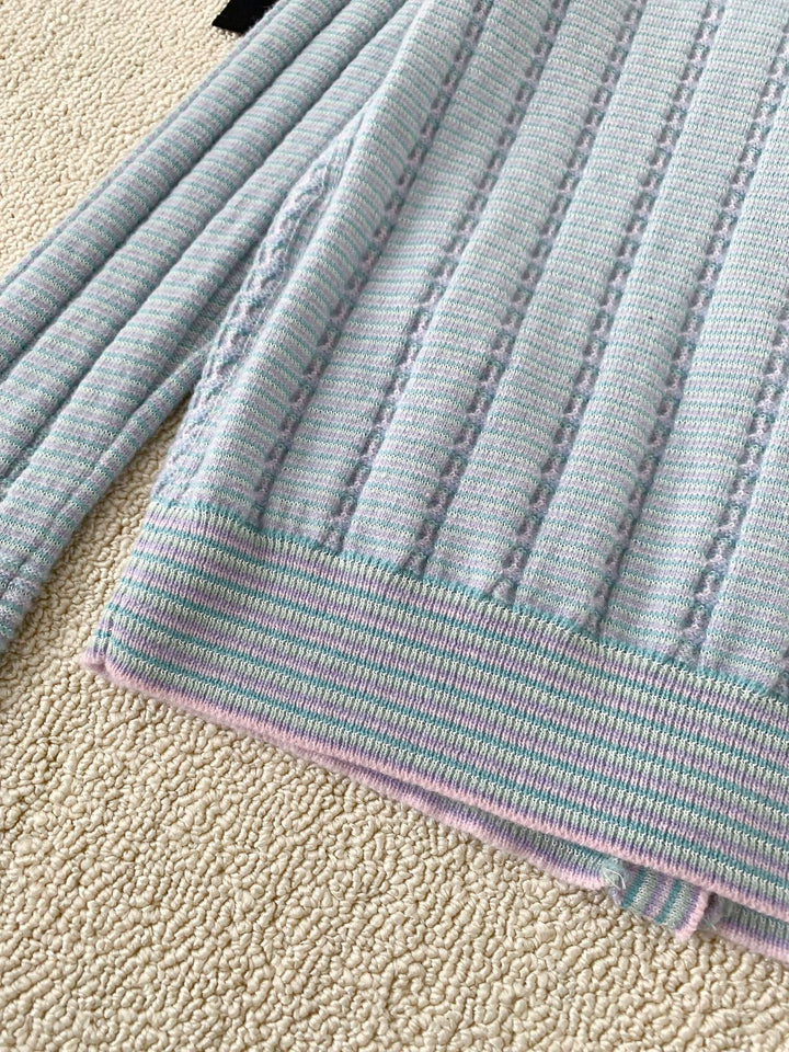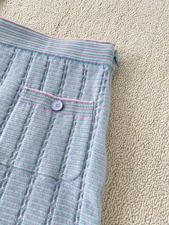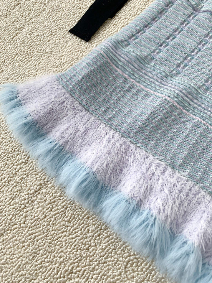 Neuer gestreifter kurzer Strickrock mit Fransen