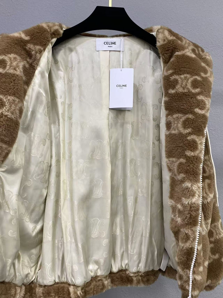 Warme, flauschige Kapuzenjacke mit Jacquardmuster