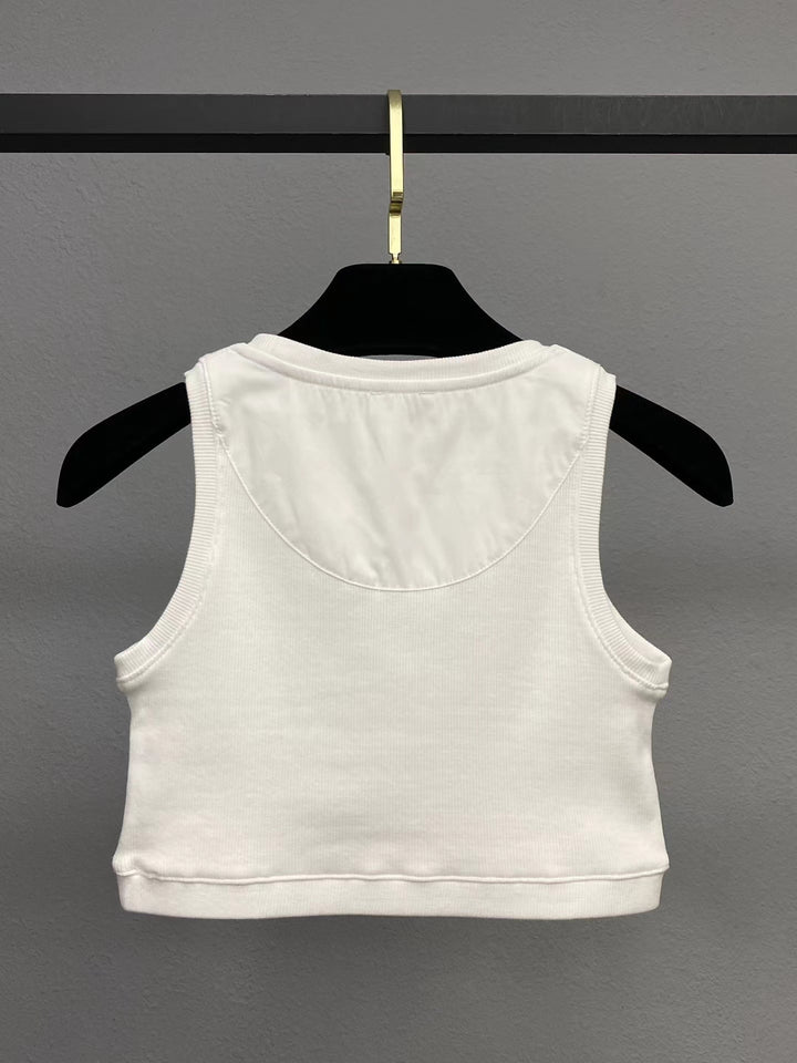 Neue, schlichte und vielseitige kurze Weste mit Logostickerei