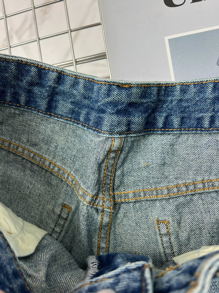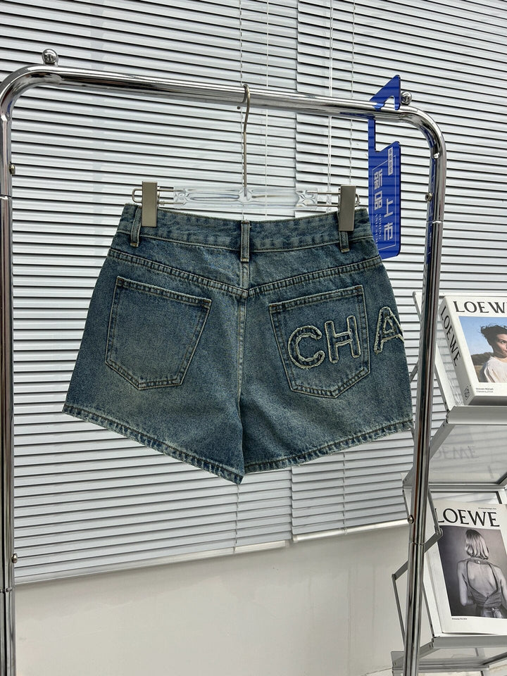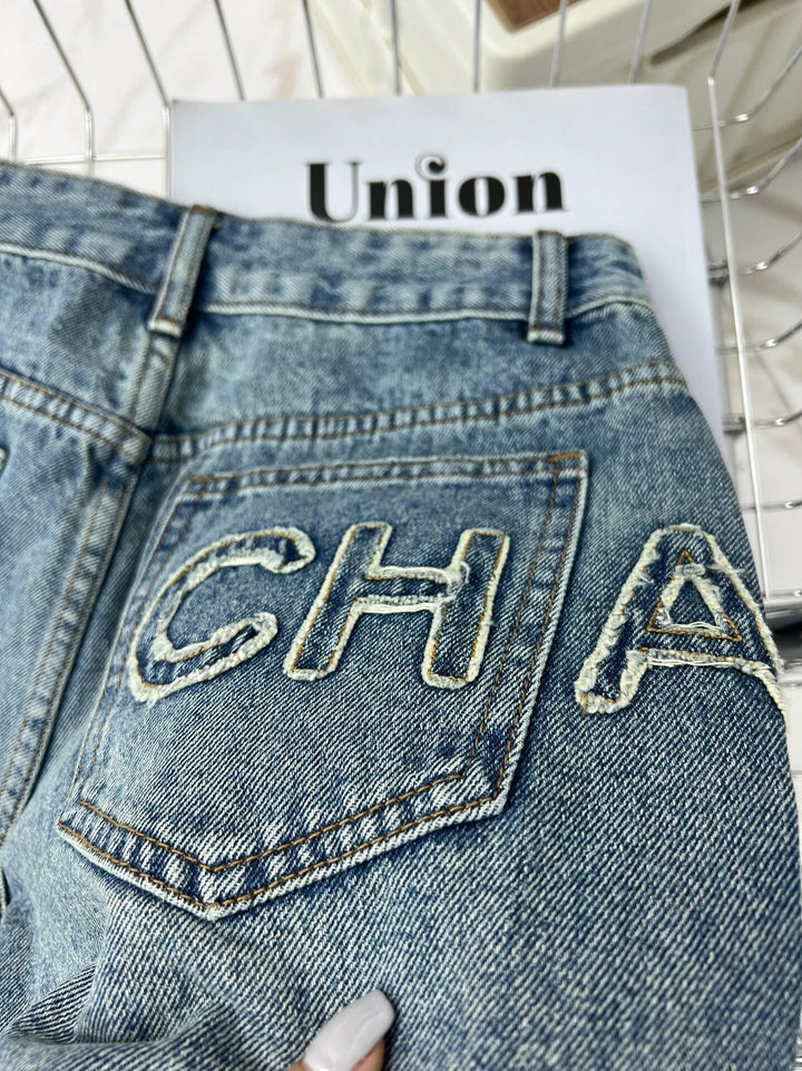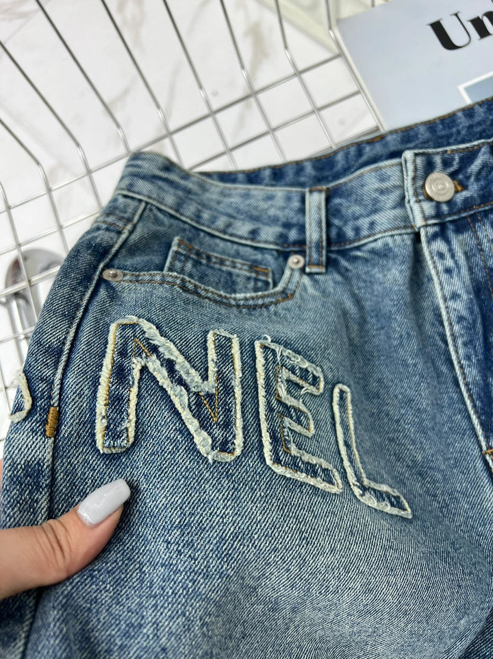 Jeansshorts mit Buchstabenstickerei