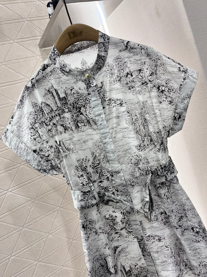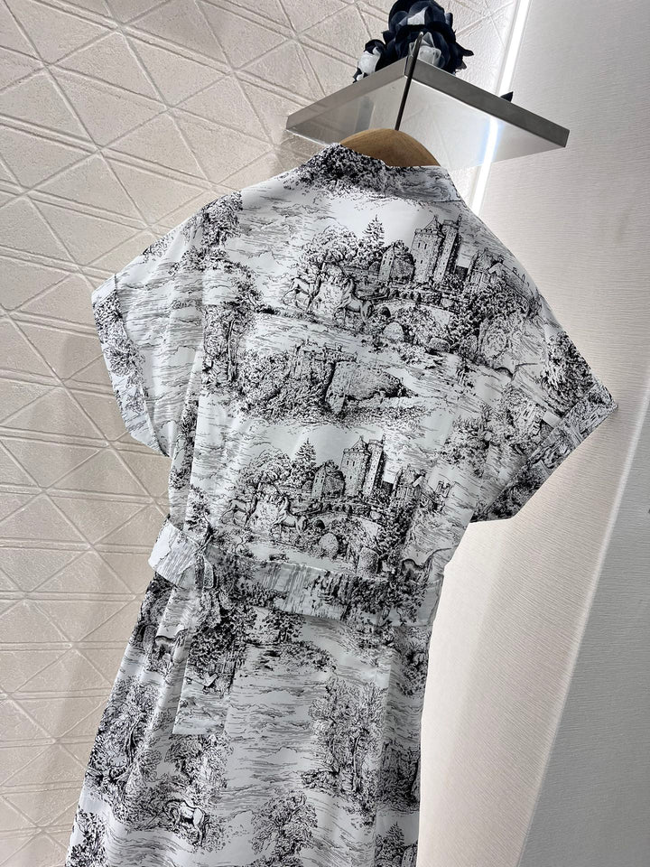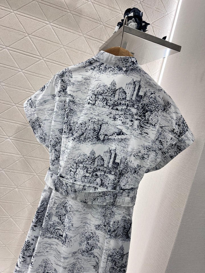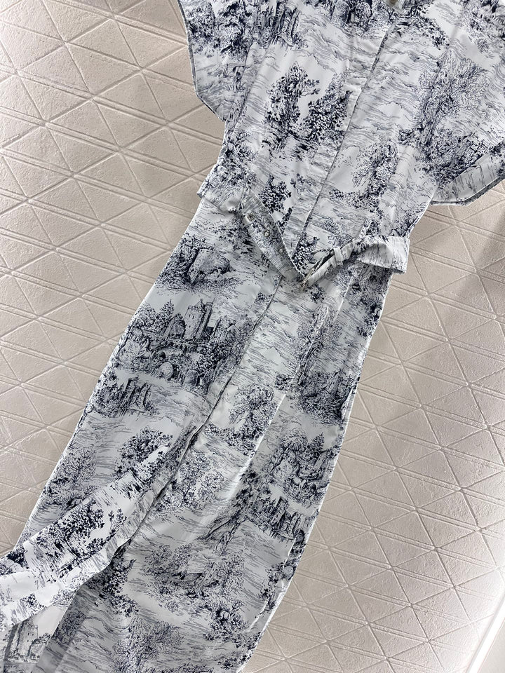 Das Kleid besteht aus maßgeschneidertem Baumwolltwill und ist atmungsaktiv, bequem und voller Textur. Der gesamte Körper des Kleides wird durch großformatige Skizziertechniken urbaner Architektur und Stadtlandschaften hervorgehoben. Der Oberkörper hat einen kleinen Stehkragen, überschnittene Schultern und ein kurzärmeliges Hemd. Die Form des Hemdes modifiziert die Armlinien und verleiht eine neue chinesische Eleganz. Der breite Gürtel dieses Stoffes ist geteilt und getragen. Die langen Beine sind gut proportioniert und der schirmförmige lange Rock passt sich der Figur an. Der Oberkörper ist stilvoll und elegant. Bei formellen Anlässen lässt es Sie märchenhafter aussehen. Maßgeschneiderte Stoffe und Accessoires für die richtige Version.