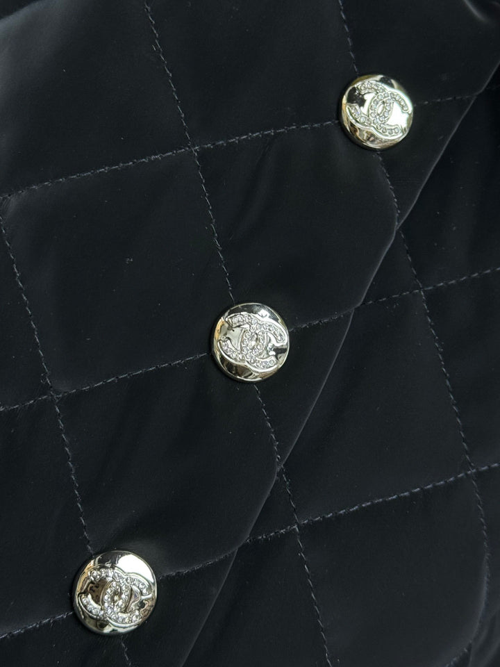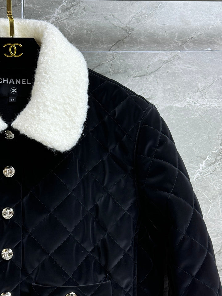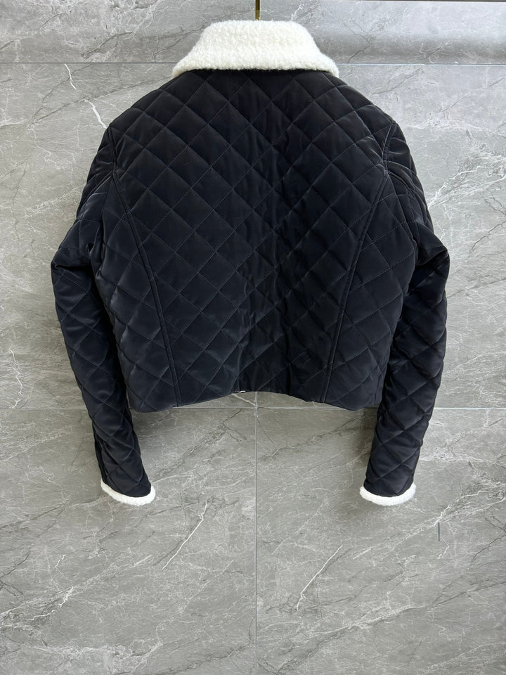 Weißer Reverskragen, gestepptes Karomuster mit exquisiten Diamantknöpfen. Modisch und stilvoll. Maßgefertigter, matter Stoff mit Lammwollfutter. Flauschig weich. Warm und bequem. Kurze Version. Lässt Sie schlank und elegant wirken.