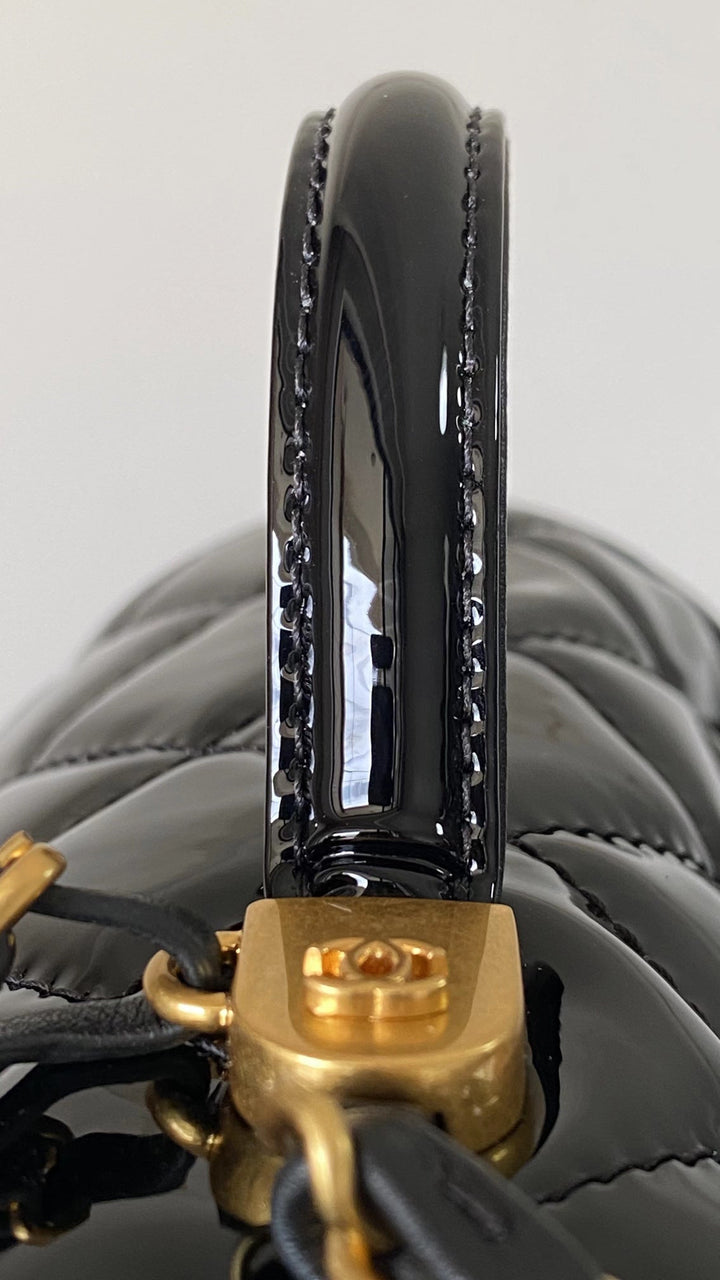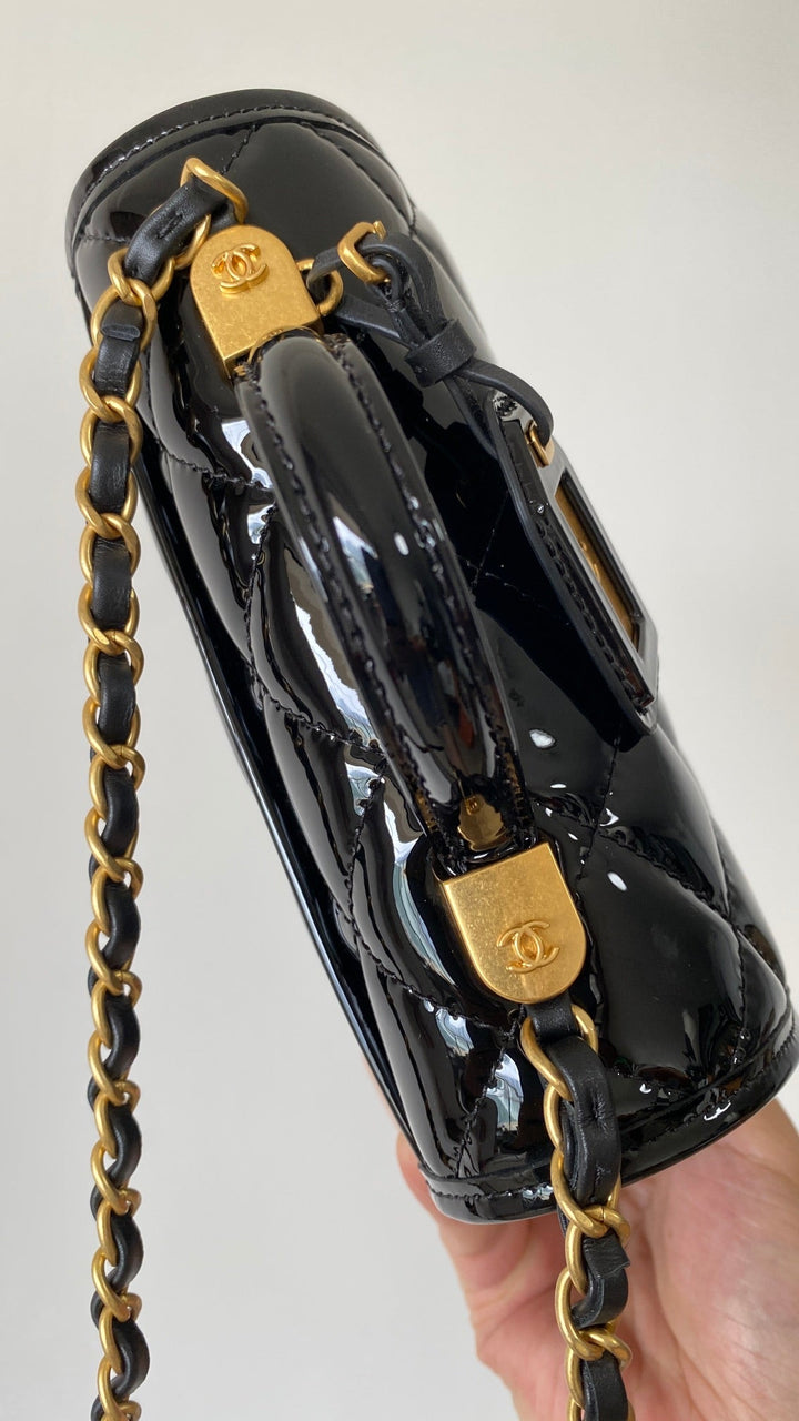 Umhängetasche aus Lackleder, Tofu-Tasche! Kalbslederlackierung „Sanyang“! Schnalle in Used-Sandgold!