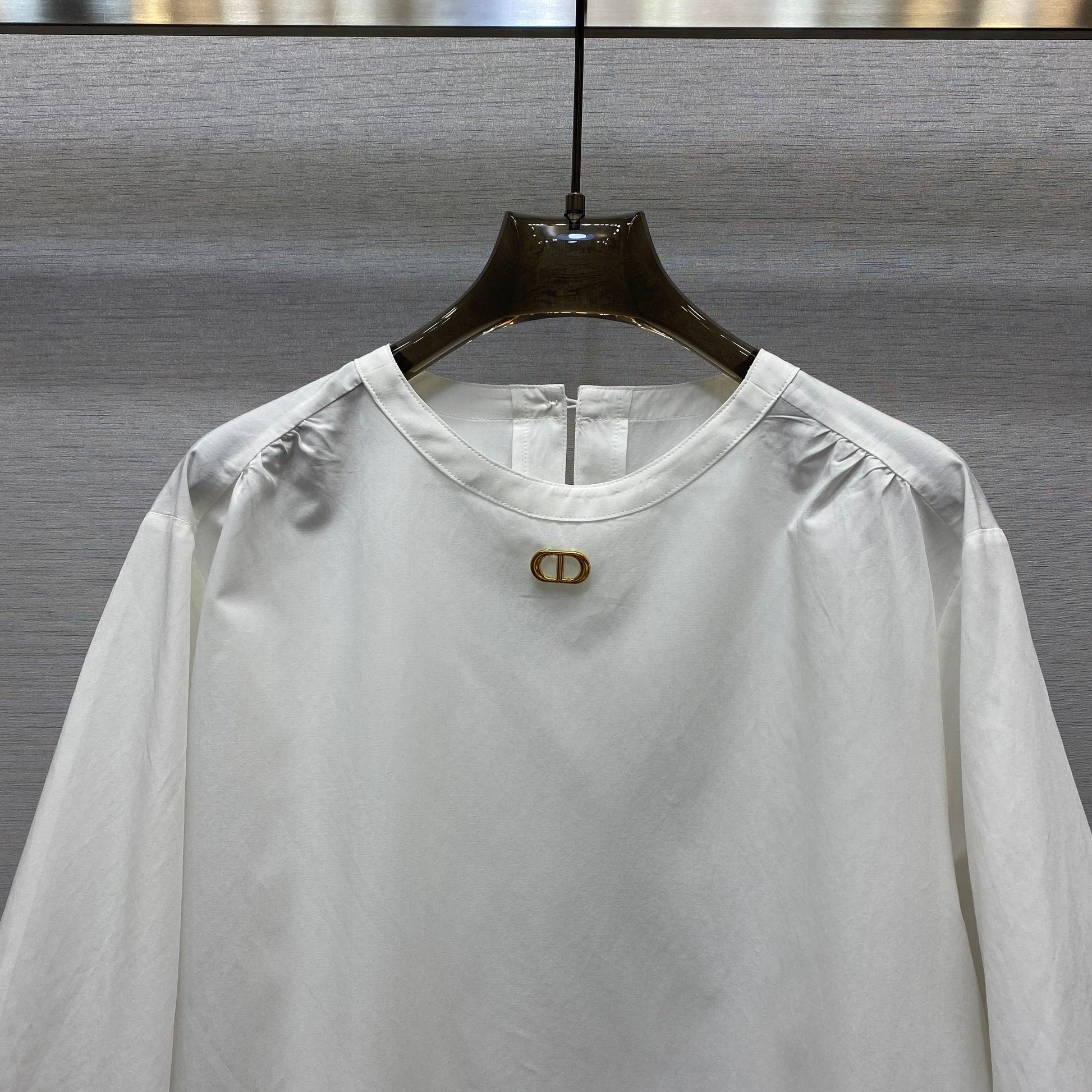 Exquisite round neck with metal buttons
