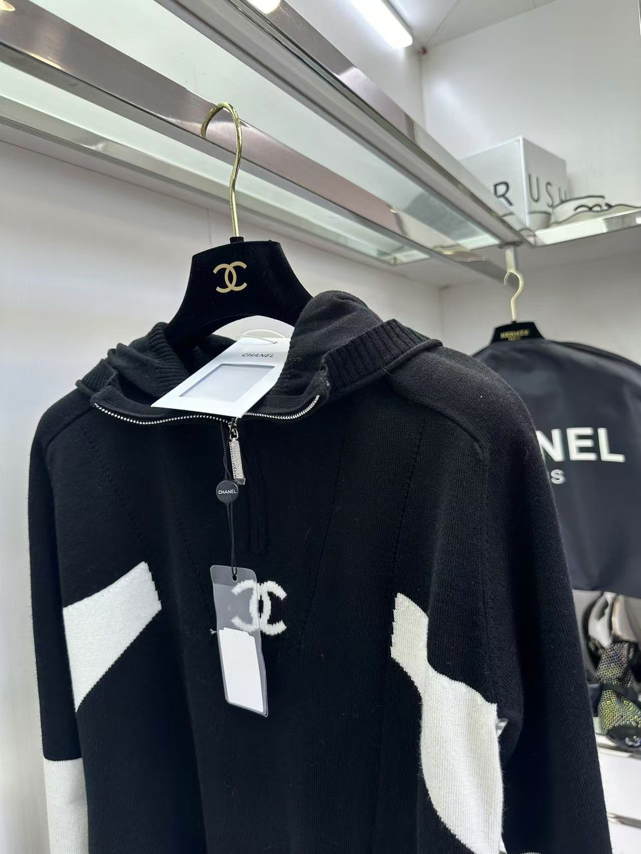 2024 ski series Half-pull hooded design with letter logo pattern embellishment Colorblock fashionable and advanced Wool blended fabric Yarn is also elastic and slim fit The upper body looks slim and elegant