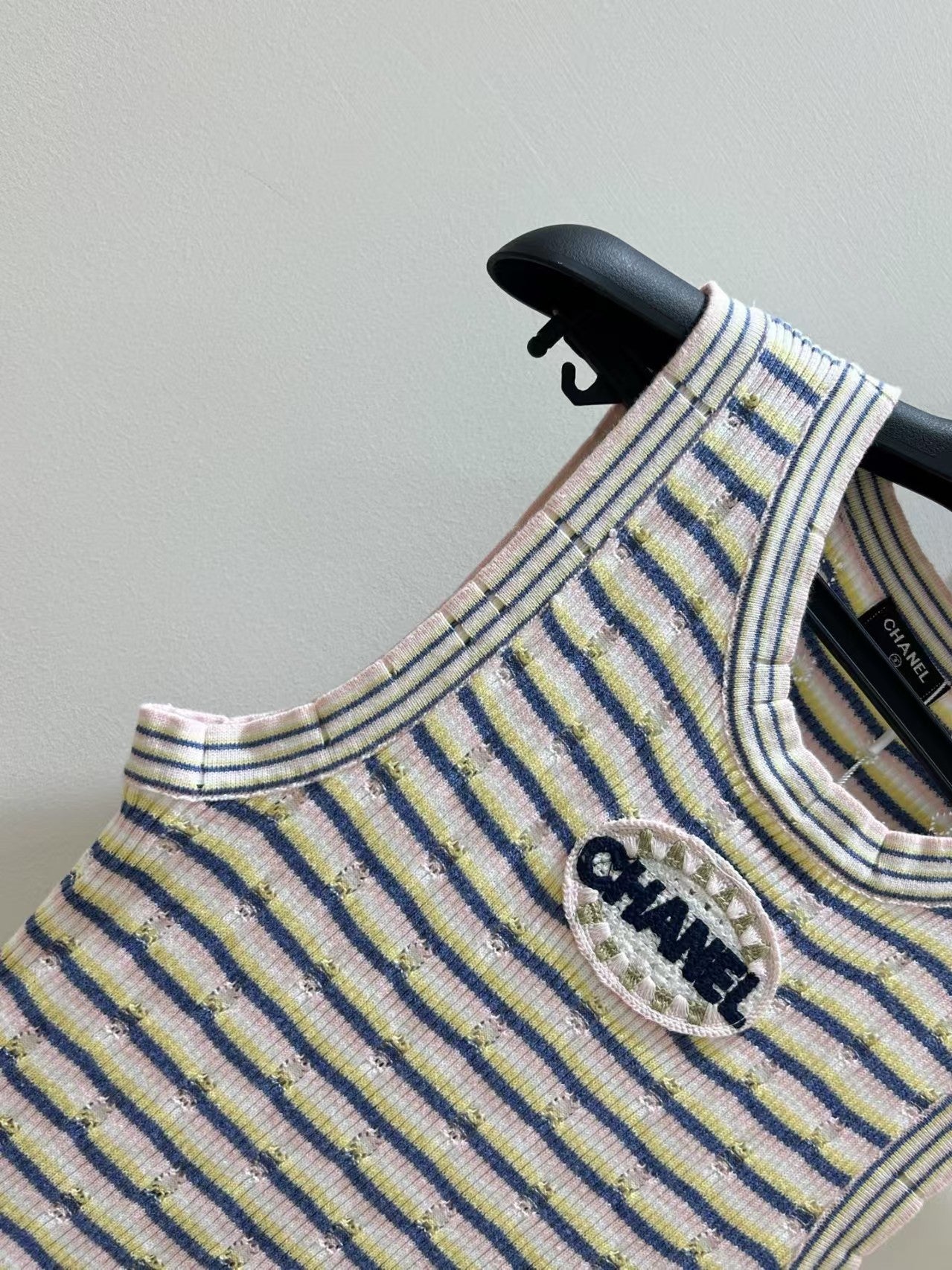 New outfits for spring and summer🆕! The classic striped knitted dress is elegant and slimming, light and breathable, fashionable and versatile, and can be easily worn in various occasions. "