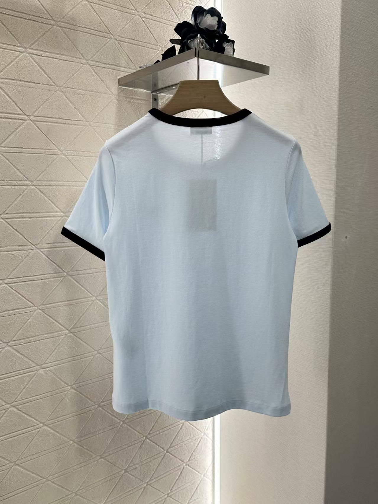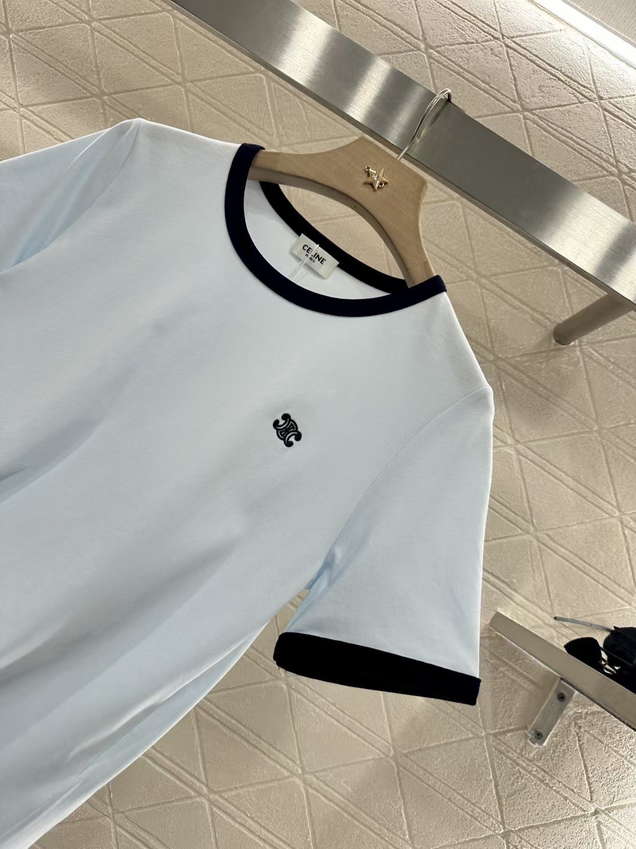 Breathable and comfortable, full of texture. Slim-fit short-sleeved T-shirt cut highlights the brand style. Made of heavy cotton with a slight stretch to create a slimming visual effect. The iconic Arc de Triomphe logo embroidered on the chest is decorated with contrasting colors on the collar and cuffs. It adds a sense of leisure and beauty to the outfit. It is stylish whether worn alone or with an inner layer.