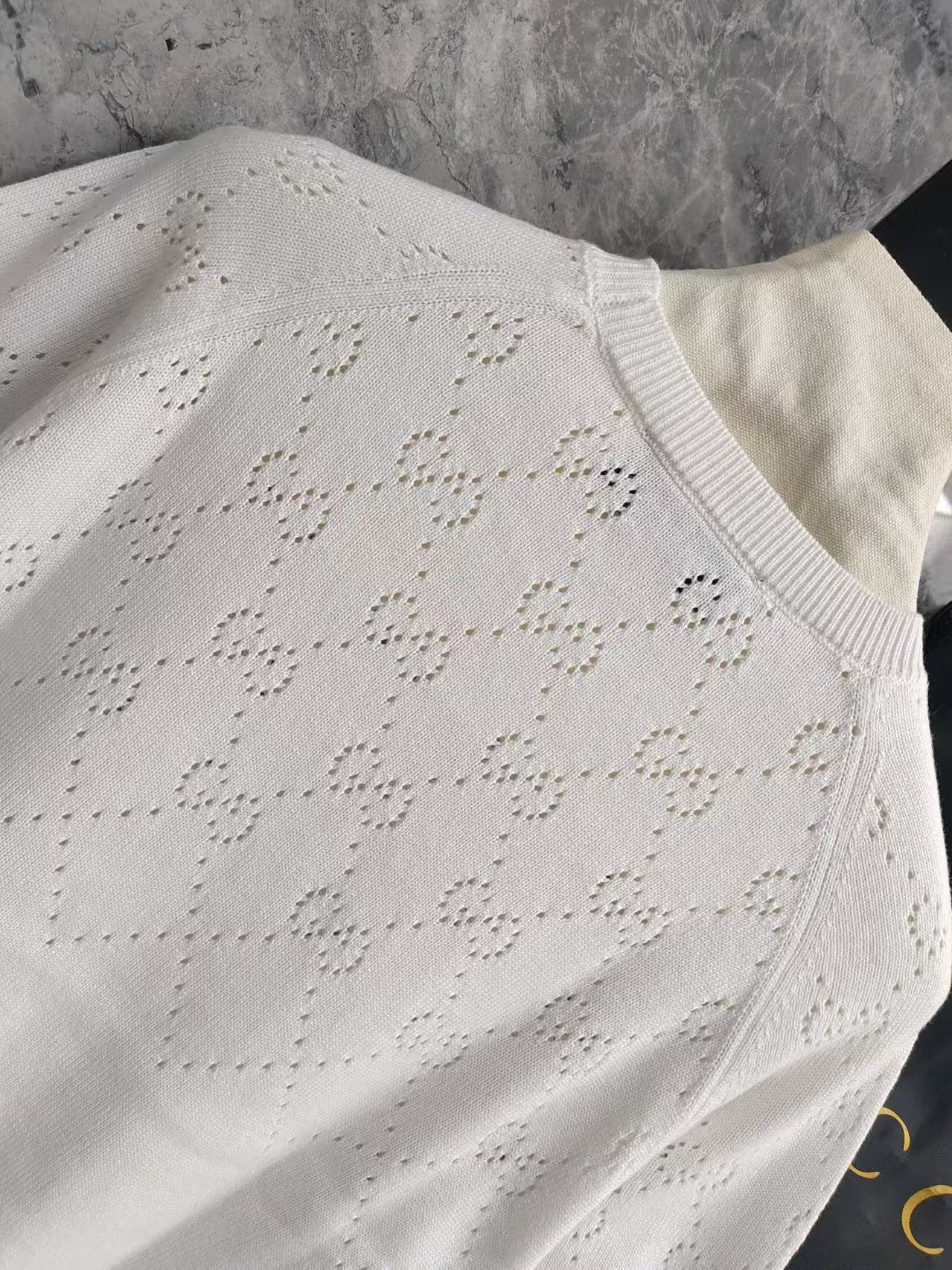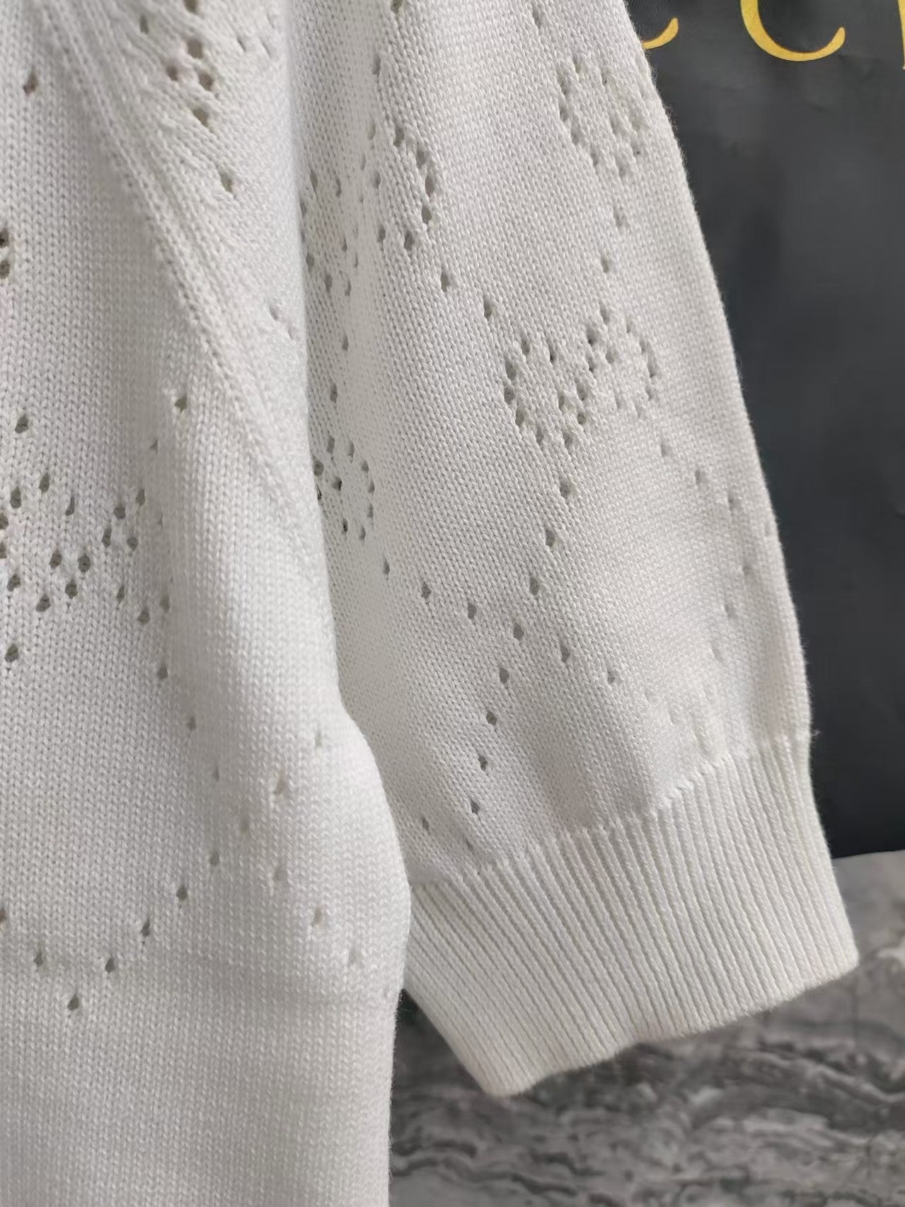 The GG monogram is a new interpretation of the brand's timeless elegance and craftsmanship. This crew neck top is crafted from white cotton and embellished with GG diamond details
