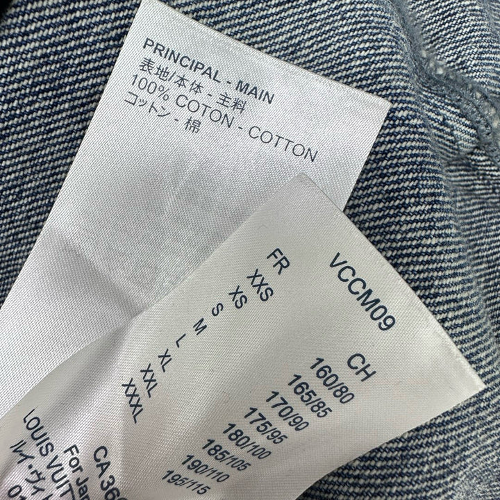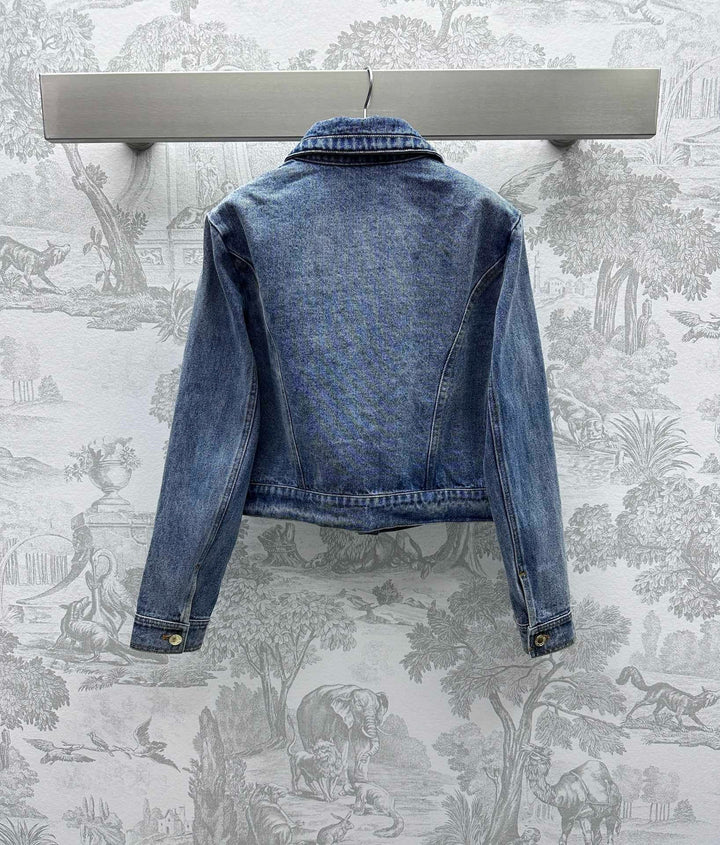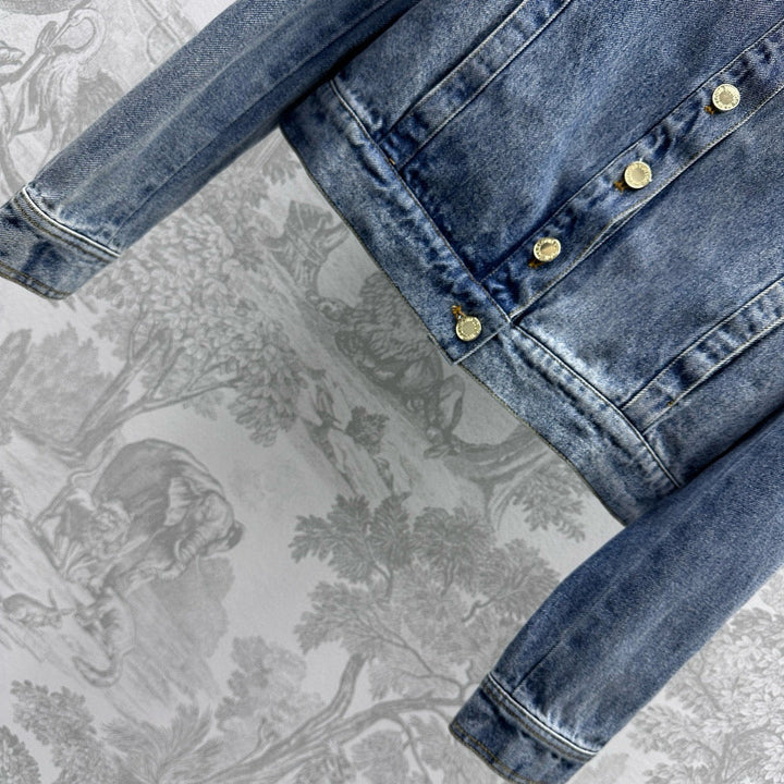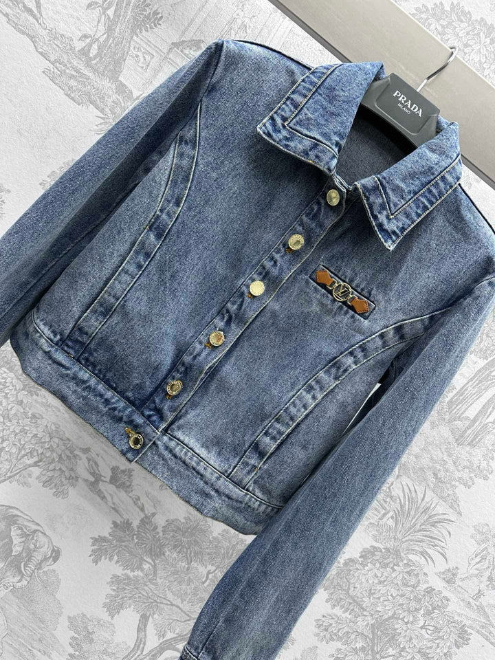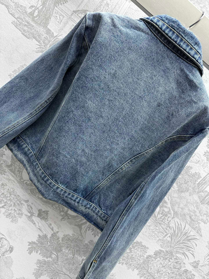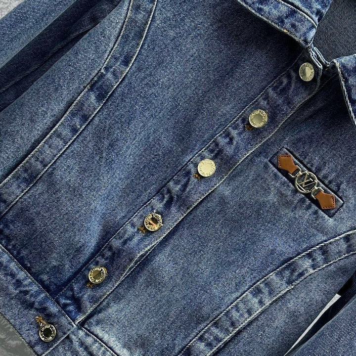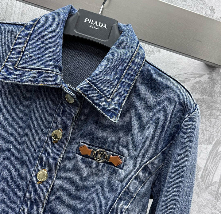 Chaqueta vaquera de manga larga con solapa y hebilla de cuero con logotipo metálico en el pecho.