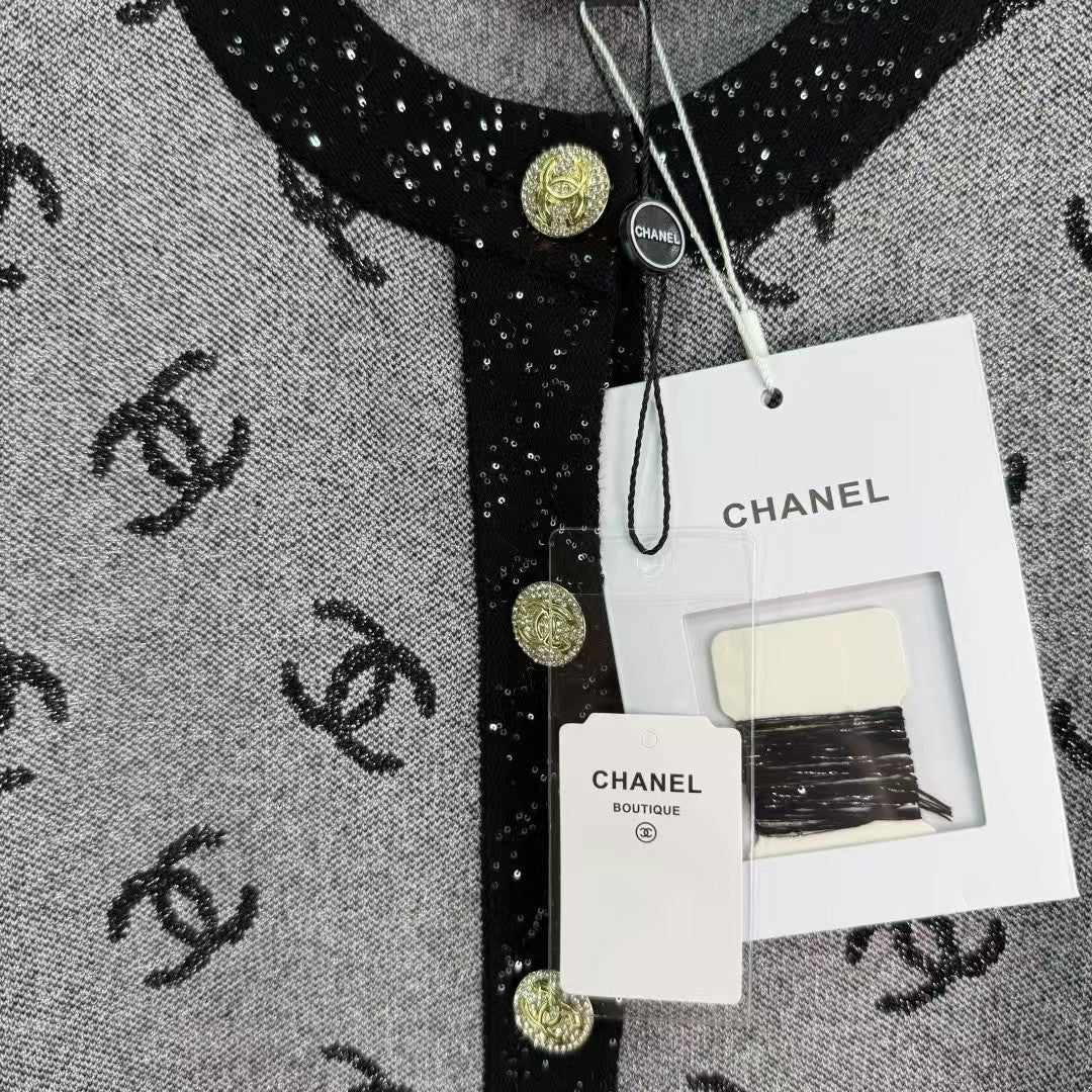 The latest series of 2025 spring and summer! Double C logo round neck short sleeves! Custom wool yarn weaving, elastic and comfortable, breathable and easy to wear, knitted short sleeves cut to beautify the head and shoulder ratio, double C logo all over the body, strong retro style, sequins interspersed, richer visual effects, easy to control for daily travel or easy gatherings!
