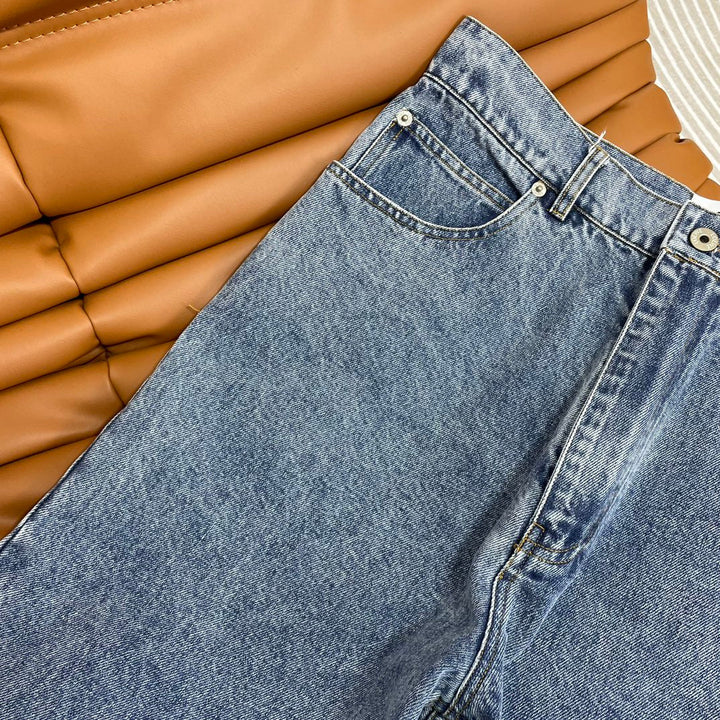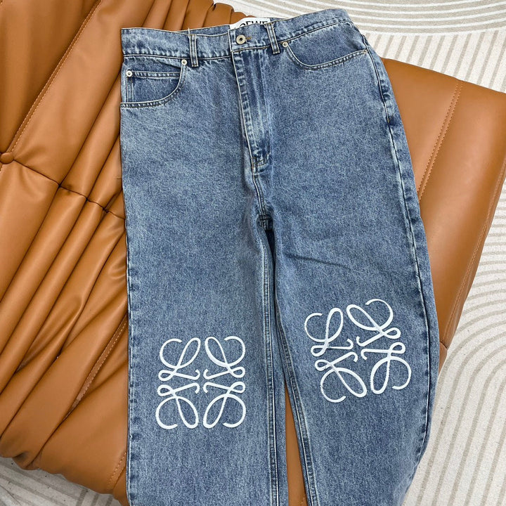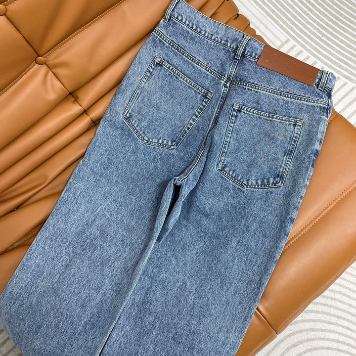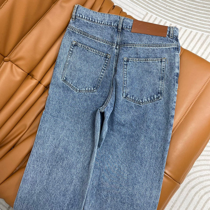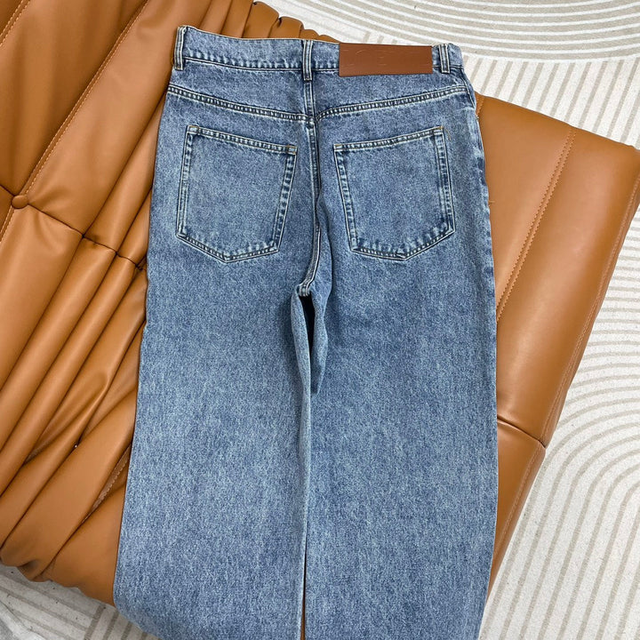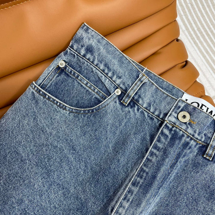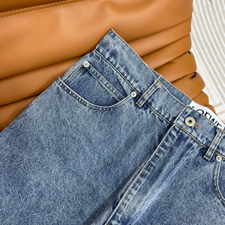 El diseño hueco frontal delinea el logotipo de la marca, el diseño de tubo recto es versátil, los detalles del botón de metal grabado y la etiqueta de cuero con letras marrones en la cintura trasera.