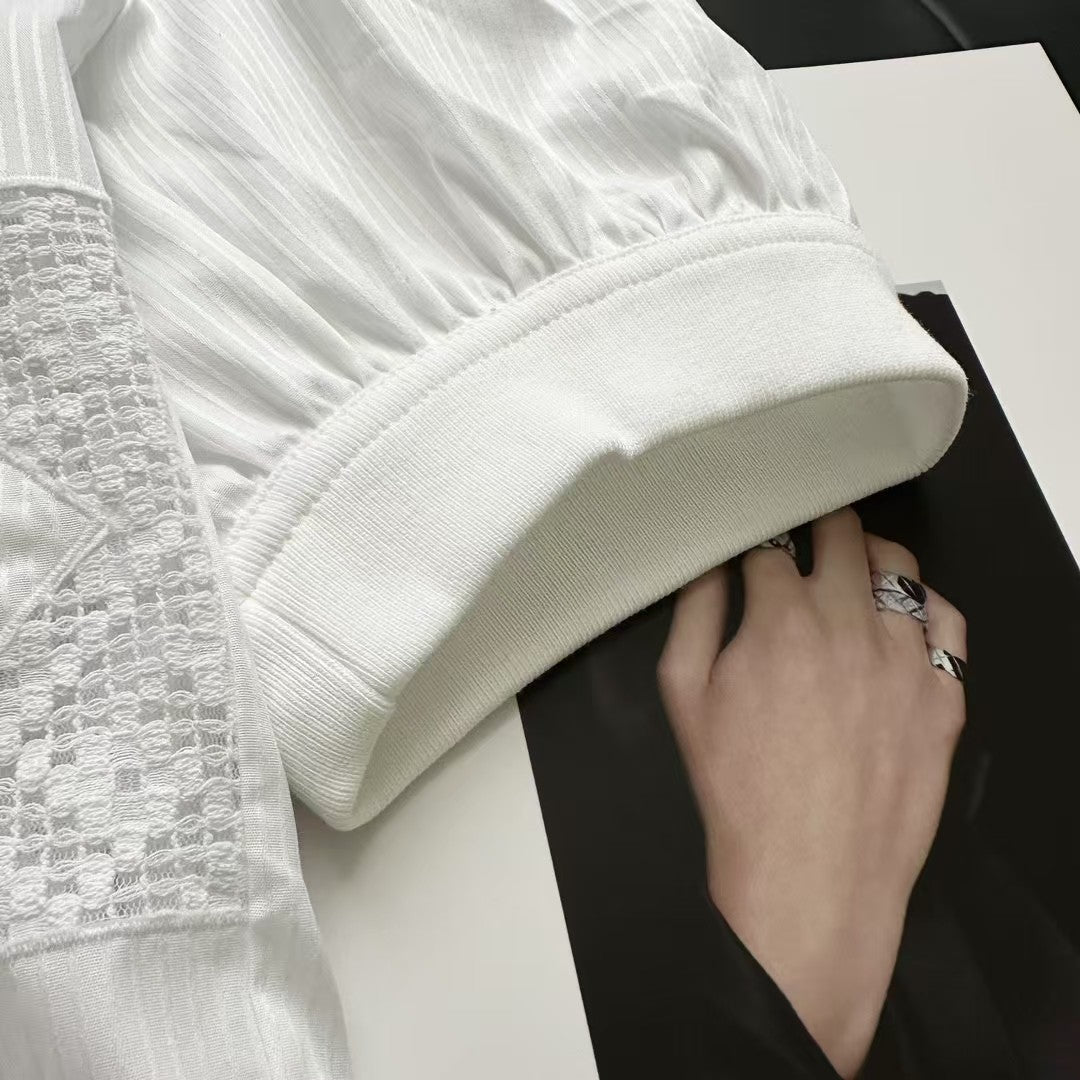 25 Spring and Summer New Products Heavy Hollow Embroidery Puff Sleeve Striped Top Retro Logo Embroidery Pattern Makes People Brighten Up Ladies and Elegant Style French Puff Sleeve Design Covers the Flesh and Makes You Look Thin Pure Cotton Fabric Feels Comfortable Playful and Age-Reducing Style Is Irresistible