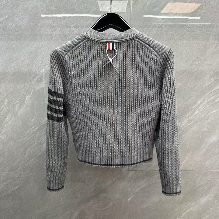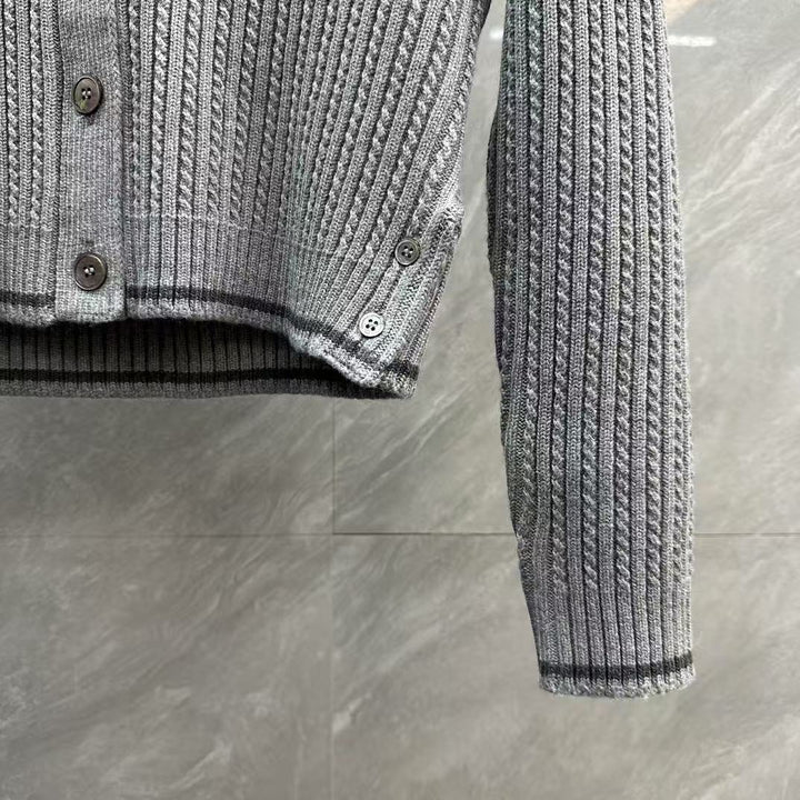 Cárdigan de lana de cuatro rayas con punto trenzado