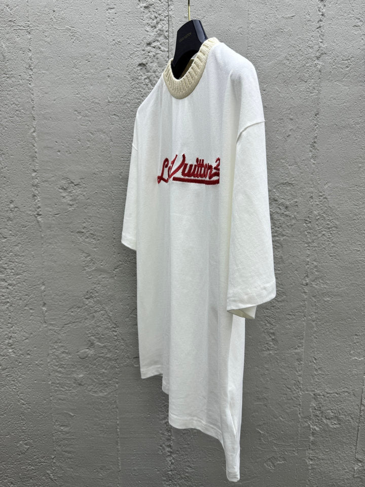 Camiseta de manga corta de punto con bordado conjunto