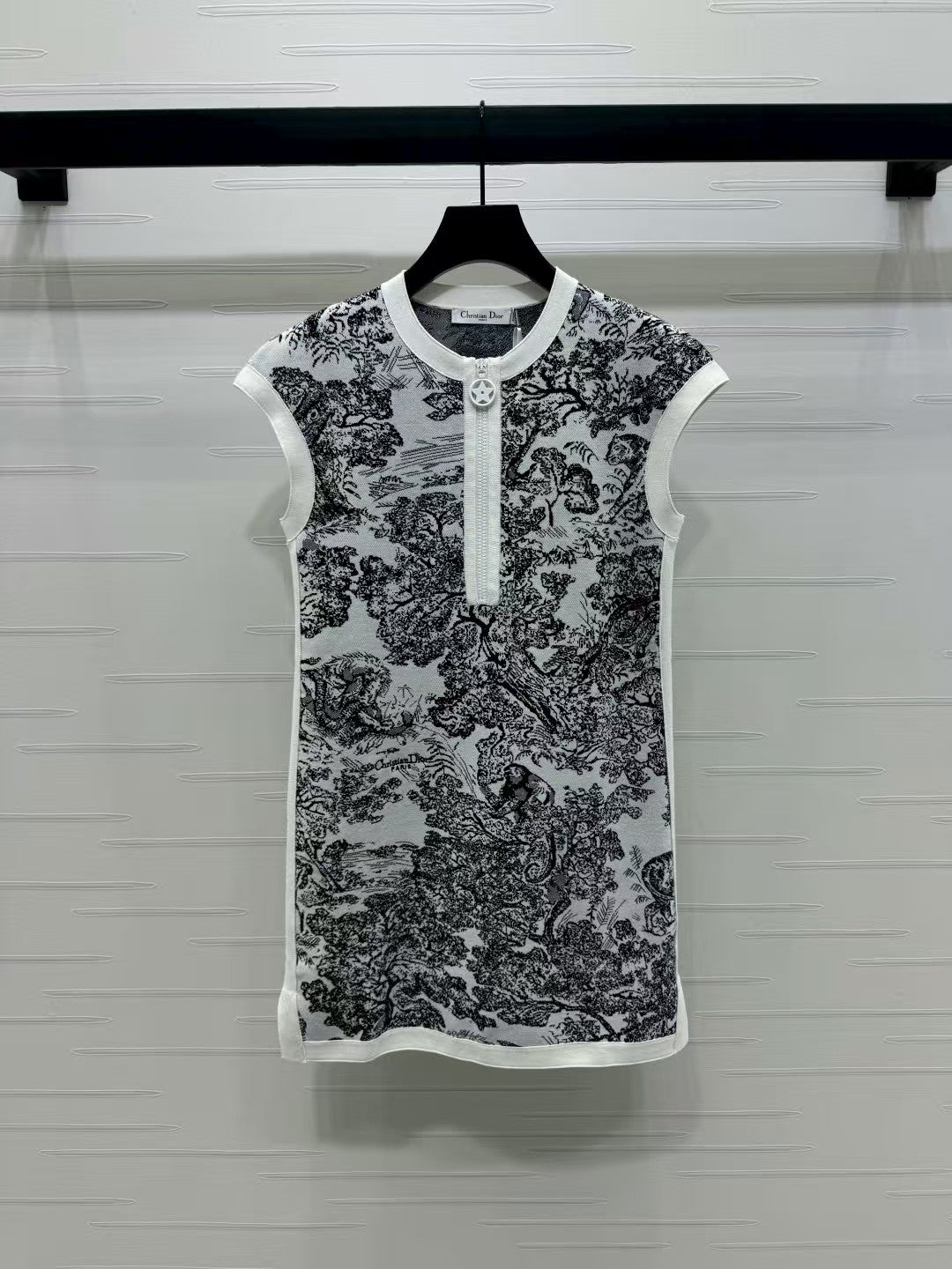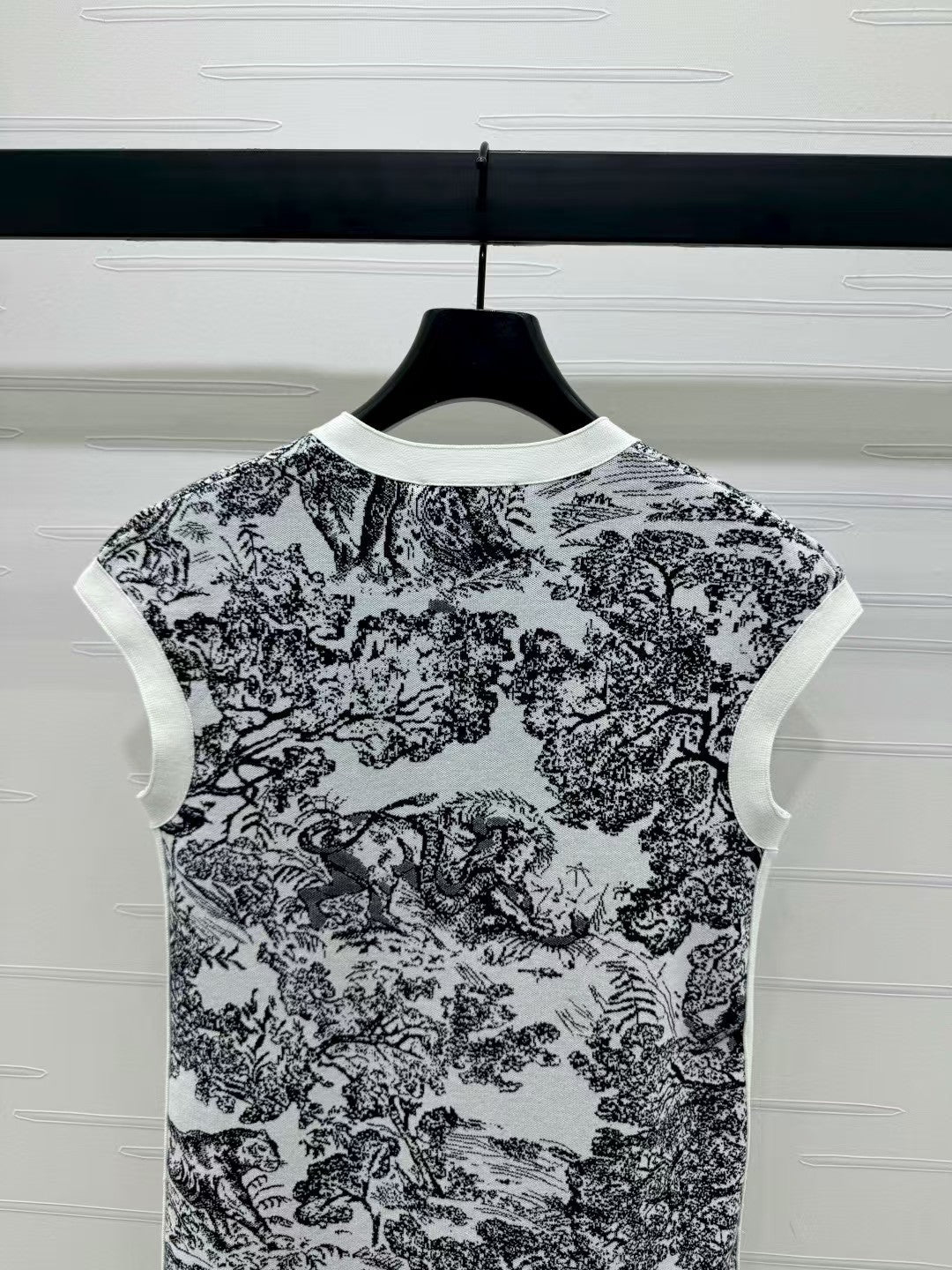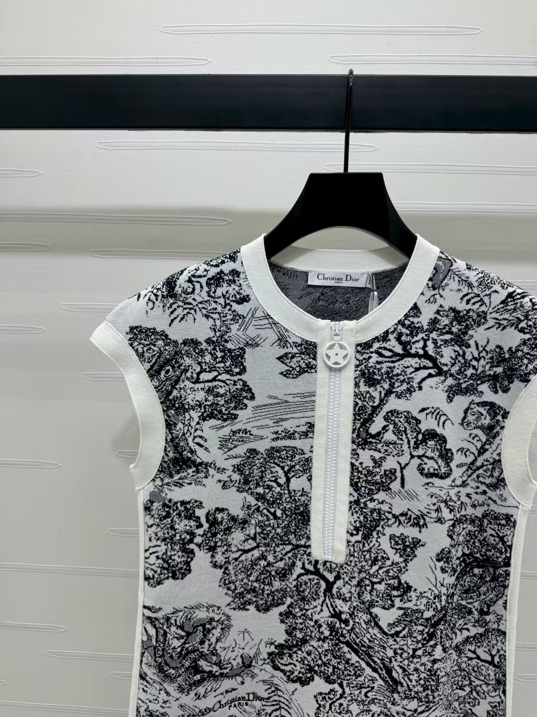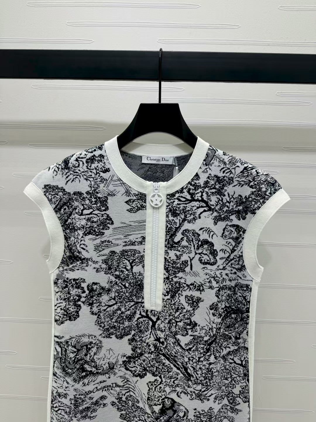 New collection for early fall 2025! Jungle jacquard knitted vest dress! Custom imported yarn weaving, high-quality and comfortable texture, round neck vest dress with zipper-style half-open cut, full-body jacquard pattern of natural jungle elements of plants and animals, collar, sleeves and hem with threaded edging, playful and fashionable style, five-pointed star round buckle zipper decoration, highlighting the brand tone, highlighting the high-end sense of wear, light luxury and fashionable, can be worn alone or layered, the first choice for fashionable wear in all seasons!