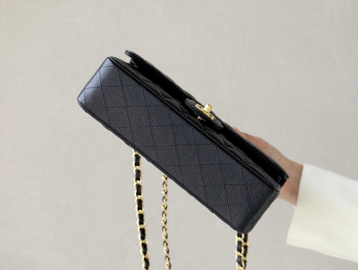 Bolso clásico mediano de piel de becerro granulada