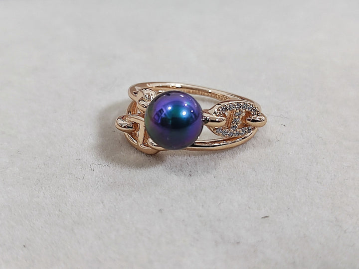 Anillo nuevo de oro rosa con perla negra, talla 678
