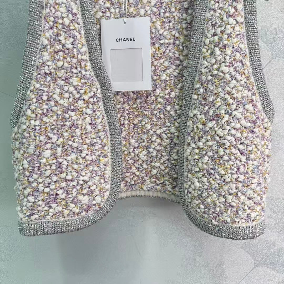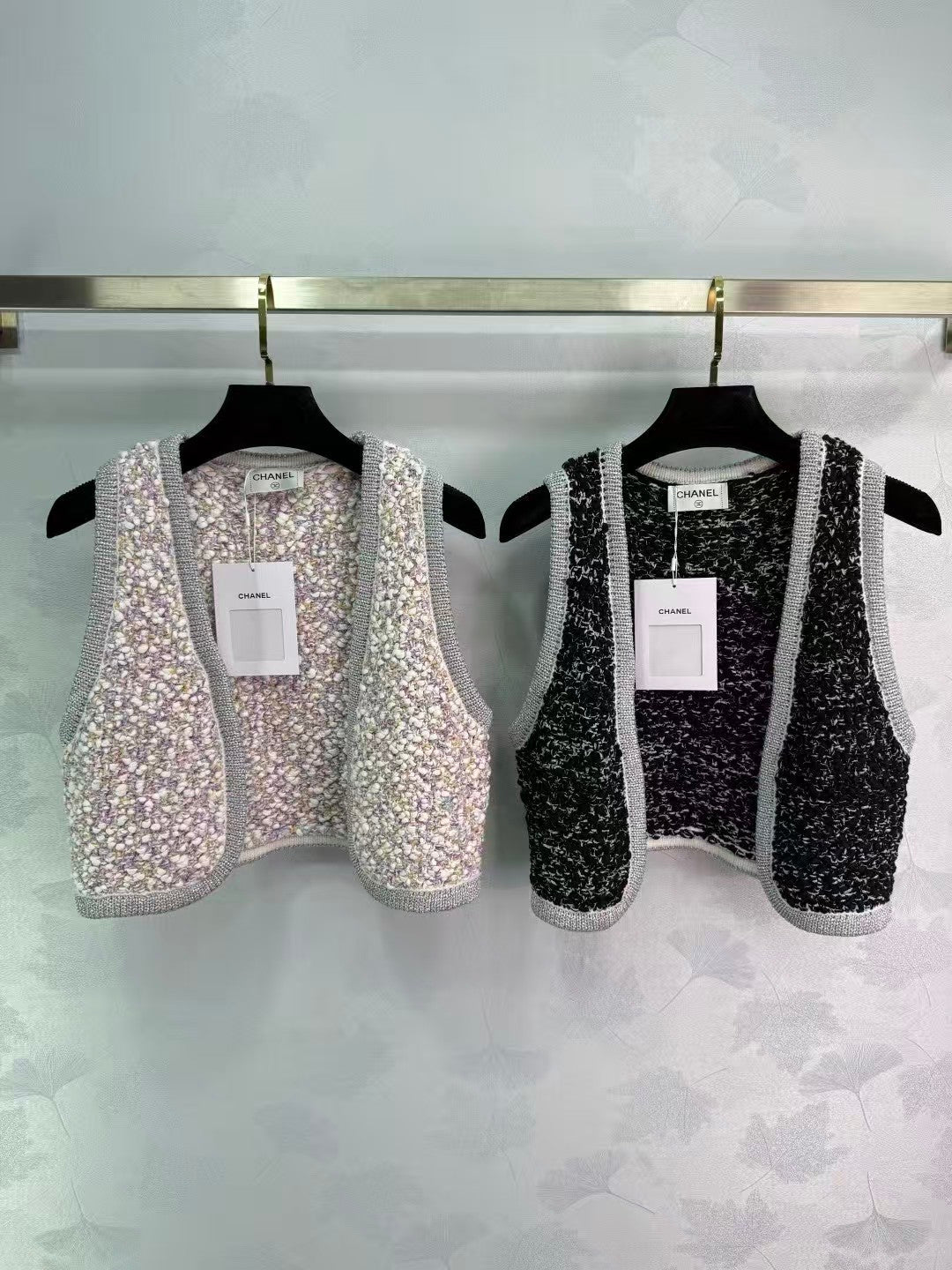 25 New Early Autumn Heavy-Worked Knitted Short Vest Knitted with Colorful Blended Yarns and Silver Rhinestone Edges. It is full of high-end feeling and unique knitting technology. It shows the temperament and retro style. It adds an elegant touch to the upper body and shows the exquisite and fashionable feeling. It is suitable for dating and commuting!