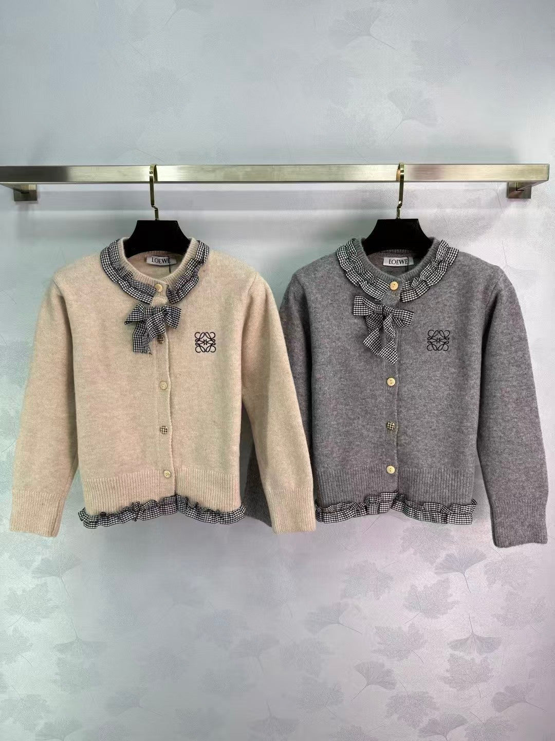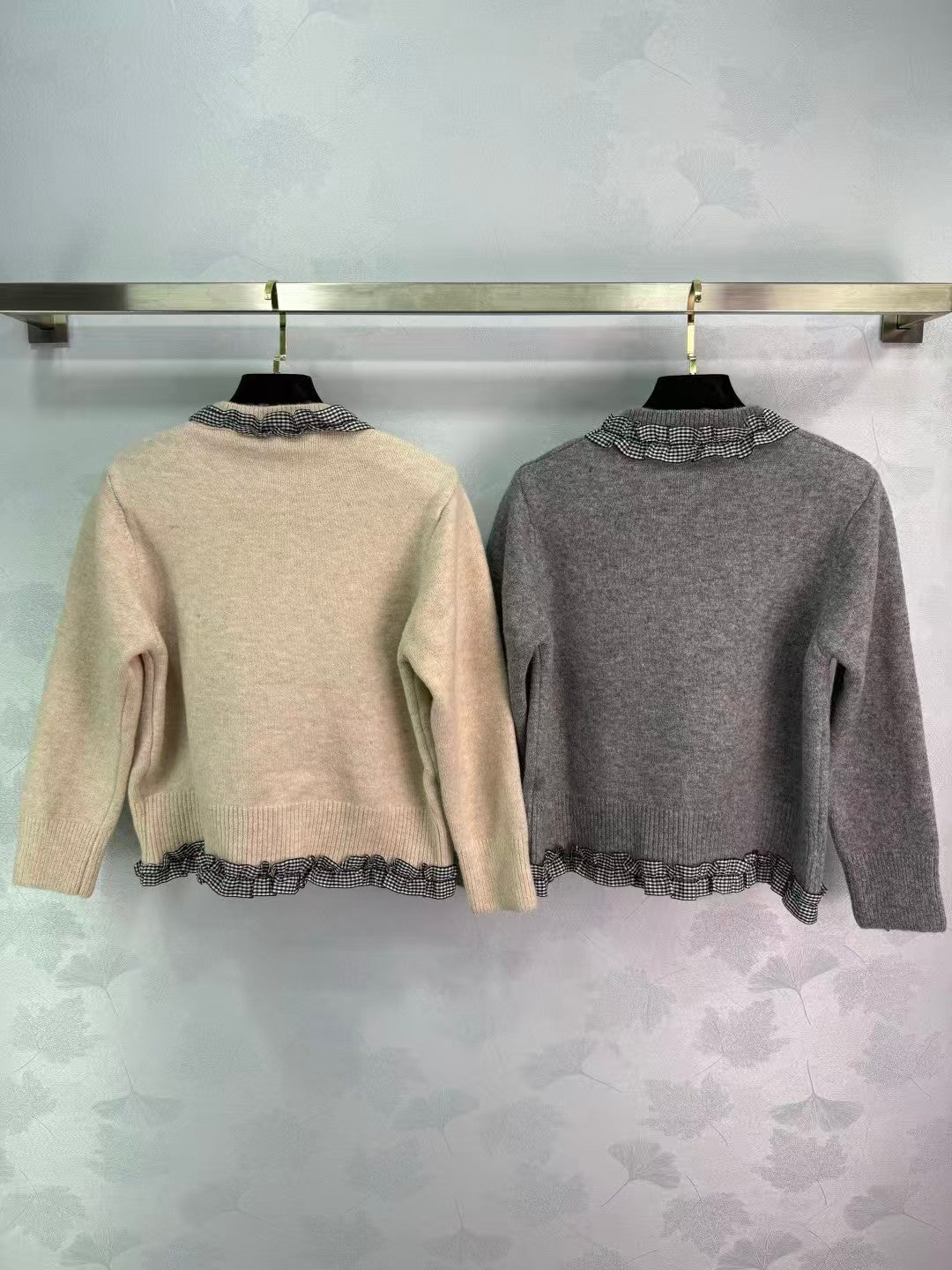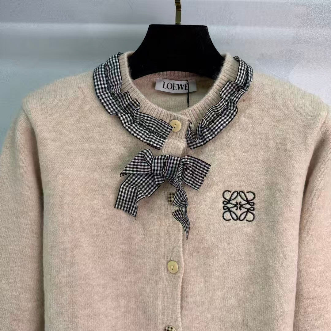 25 New Plaid Bow Knitted Cardigan for Early Autumn. Ruffled neckline with black and white plaid bow. Embroidered logo on the chest. Round neck cardigan design. Soft and comfortable fabric. Exquisite knitting craftsmanship. Adds elegance to the upper body and shows a refined and stylish look!