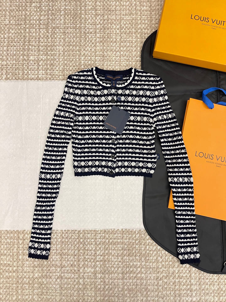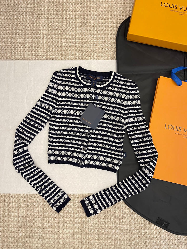 Nuevo cárdigan de rayas jacquard con cuello redondo