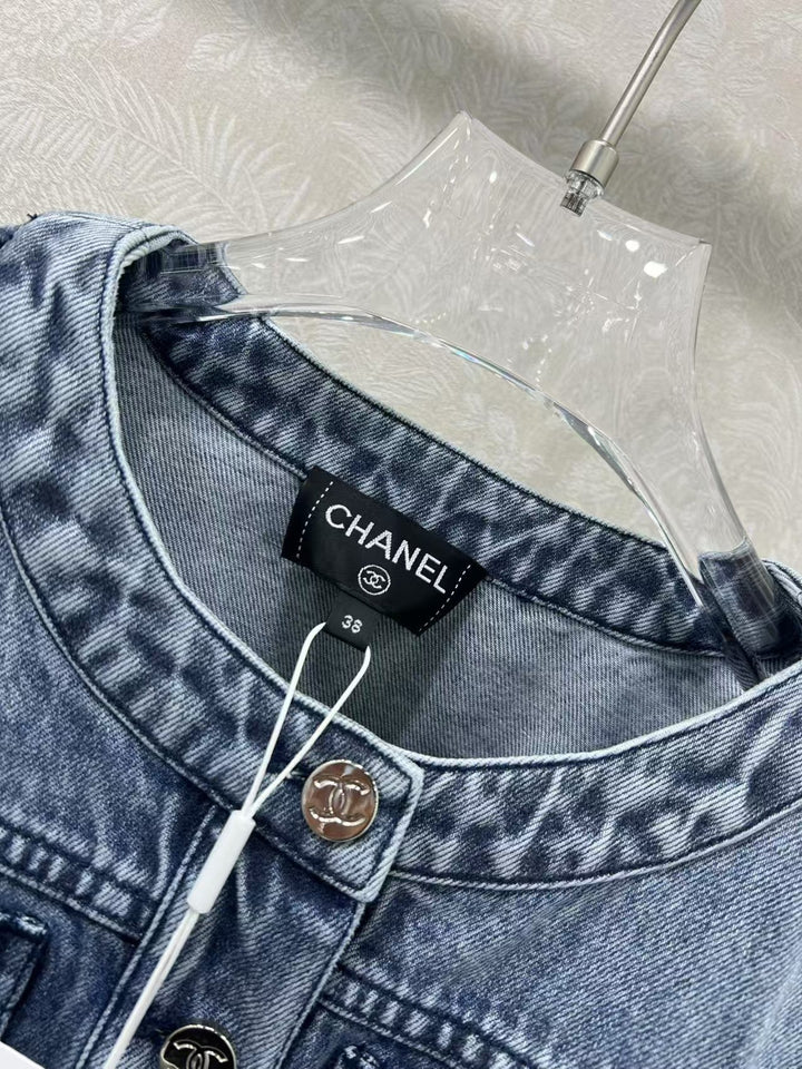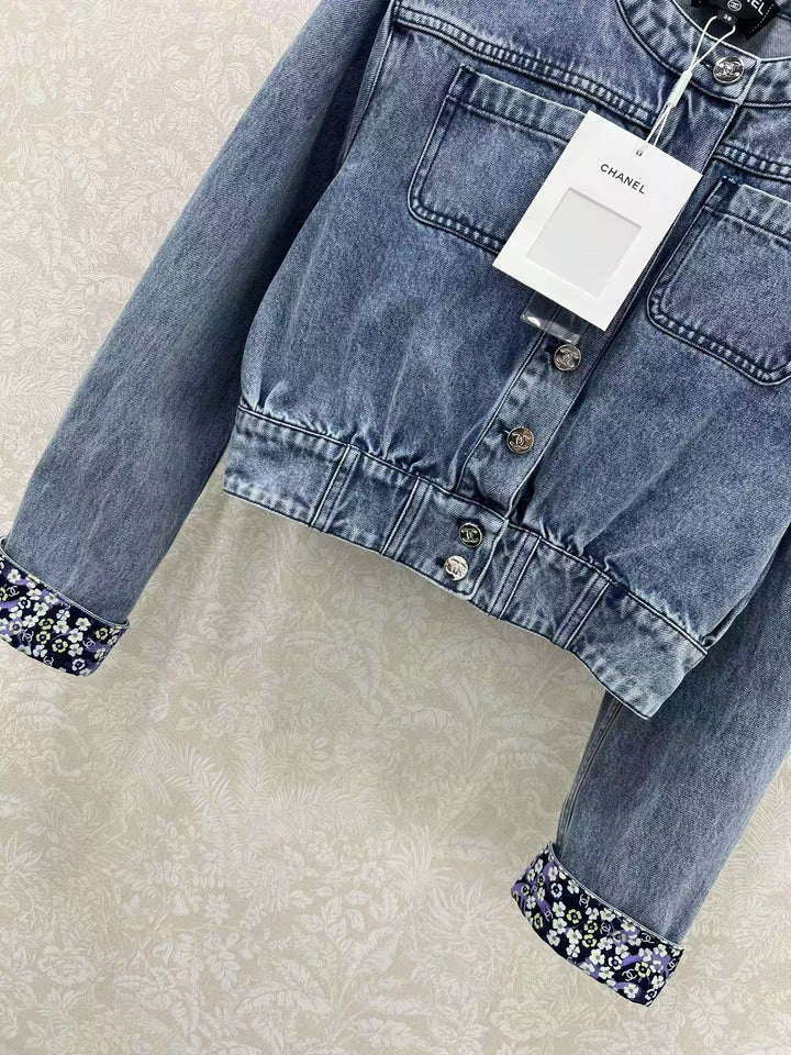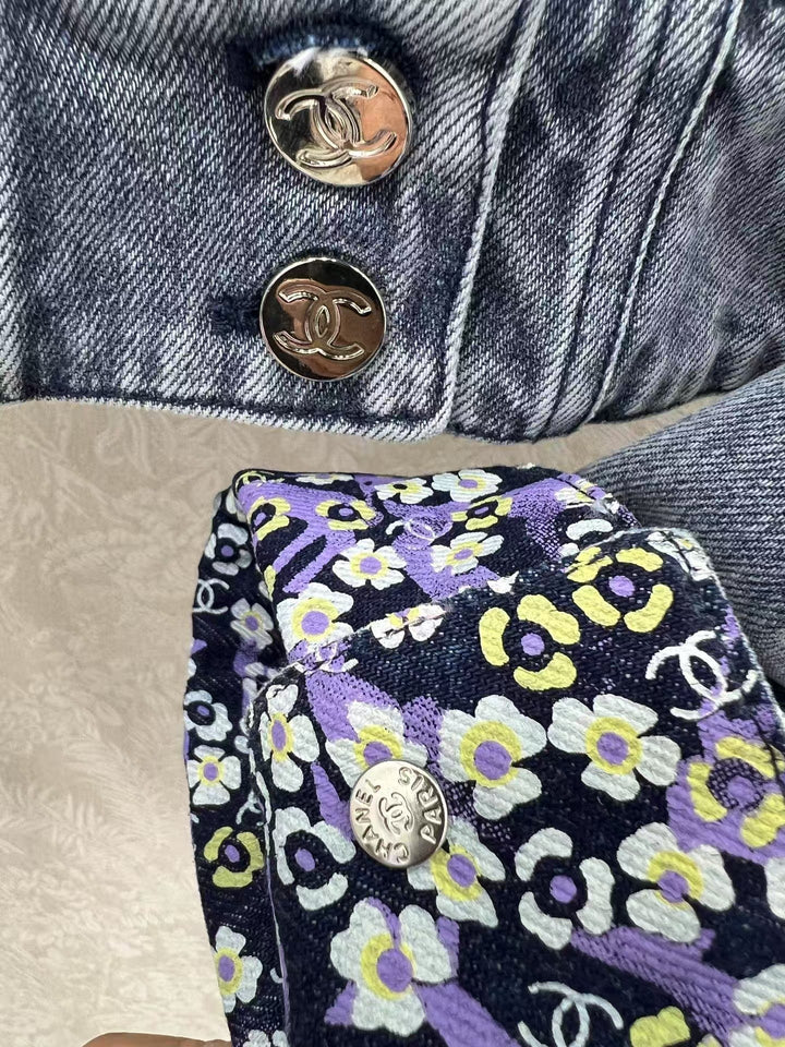Chaqueta vaquera retro número 25 con logo estampado en los puños. Confeccionada en tejido vaquero de sarga de algodón importado YB. Cómoda y elegante. El corte y los detalles realzan su sofisticación. Bolsillos y bajo simétricos con cintura ligeramente entallada. Crea un efecto de capas. Lujo discreto. Acabados y accesorios de alta calidad. Herrajes personalizados con la doble C. Combina con otras prendas de la misma colección. Un look completo con una textura suave y transpirable que realza tu encanto. Diseño sencillo y sofisticado.