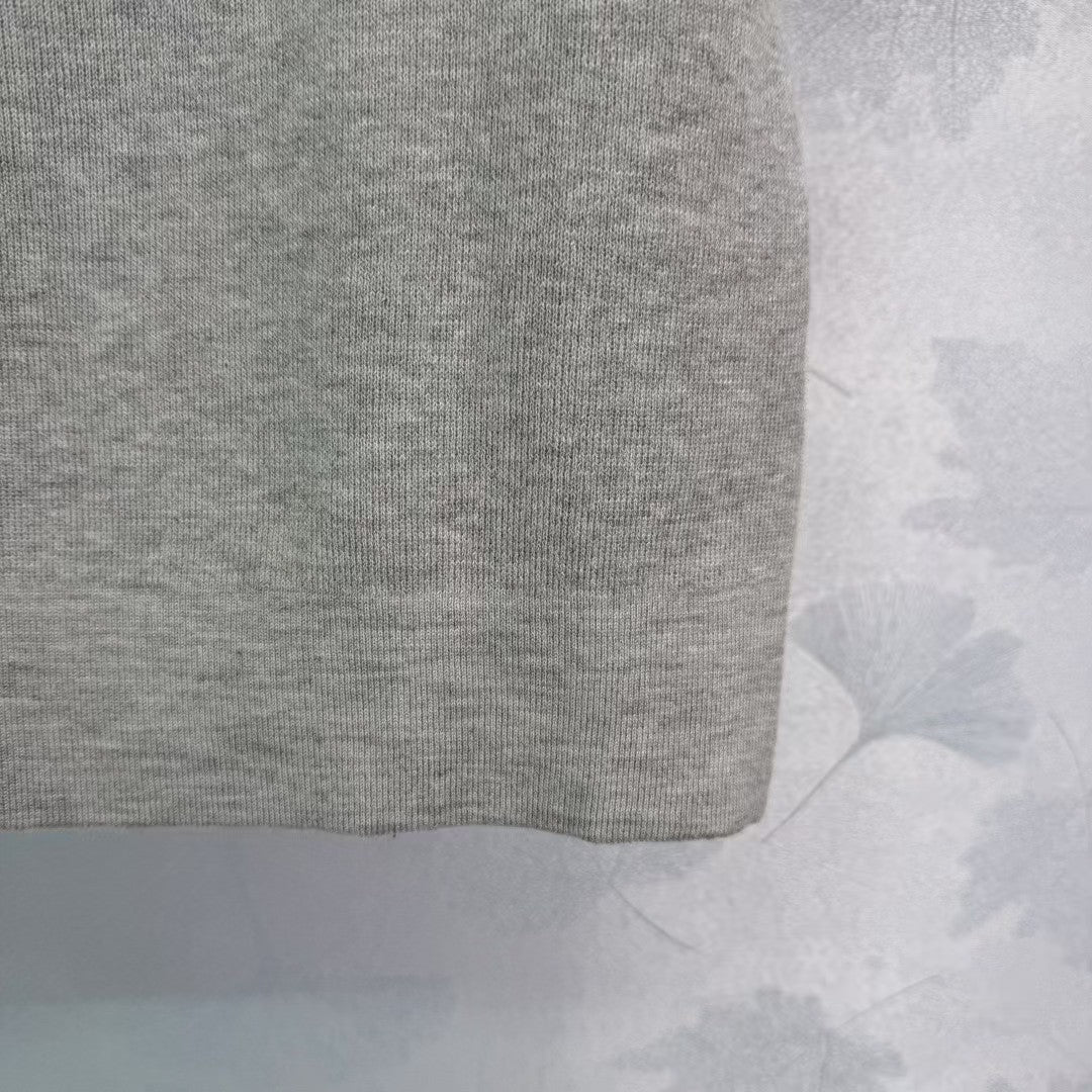 This high-end contrasting knitted short-sleeve is designed for the quality-conscious miumiu girl. The high-end gray tone of the body reveals an extraordinary taste in a low-key way, making it easy to wear in various occasions. The neckline and cuffs are cleverly integrated with the black edge design, and the contrasting color effect is eye-catching and harmonious, adding a bright spot to the overall shape. The delicate knitting craftsmanship makes the short-sleeve close-fitting and comfortable, with excellent breathability.