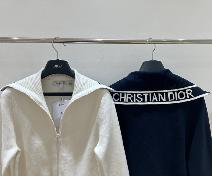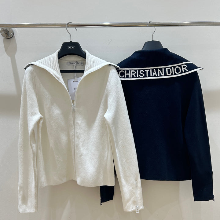 Cárdigan de punto con cremallera y cuello azul marino