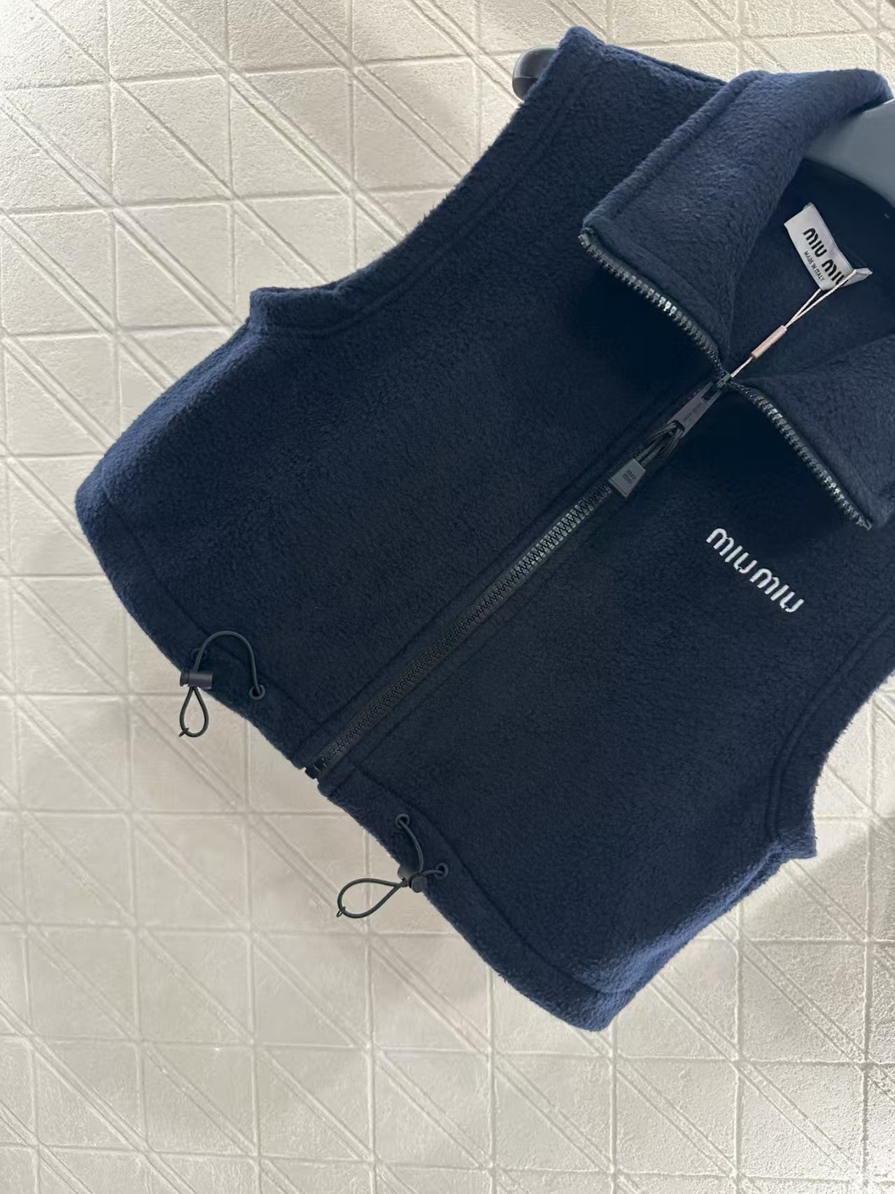 Customized YB imported Teddy plush material. Soft and comfortable, skin-friendly and warm. Perfect for layering with the seasons for a stylish and warm feel. Stand-up collar, cropped vest. Zipper closure and drawstring hem for easy on and off. Brand logo on chest. Slim, cropped fit. Plush feel. Playful and youthful. A soft and fashionable look. A perfect fall and winter layering option.