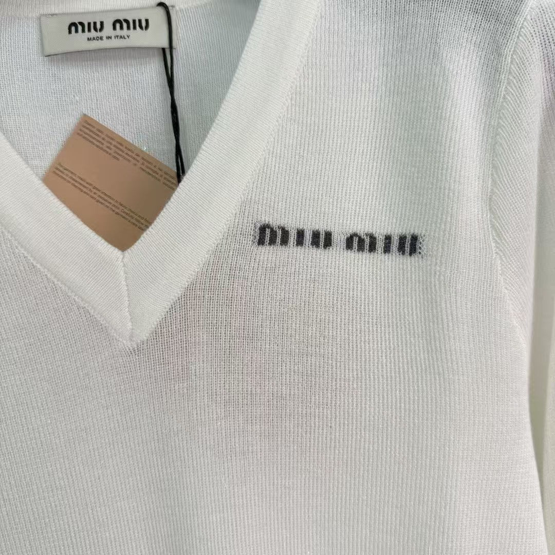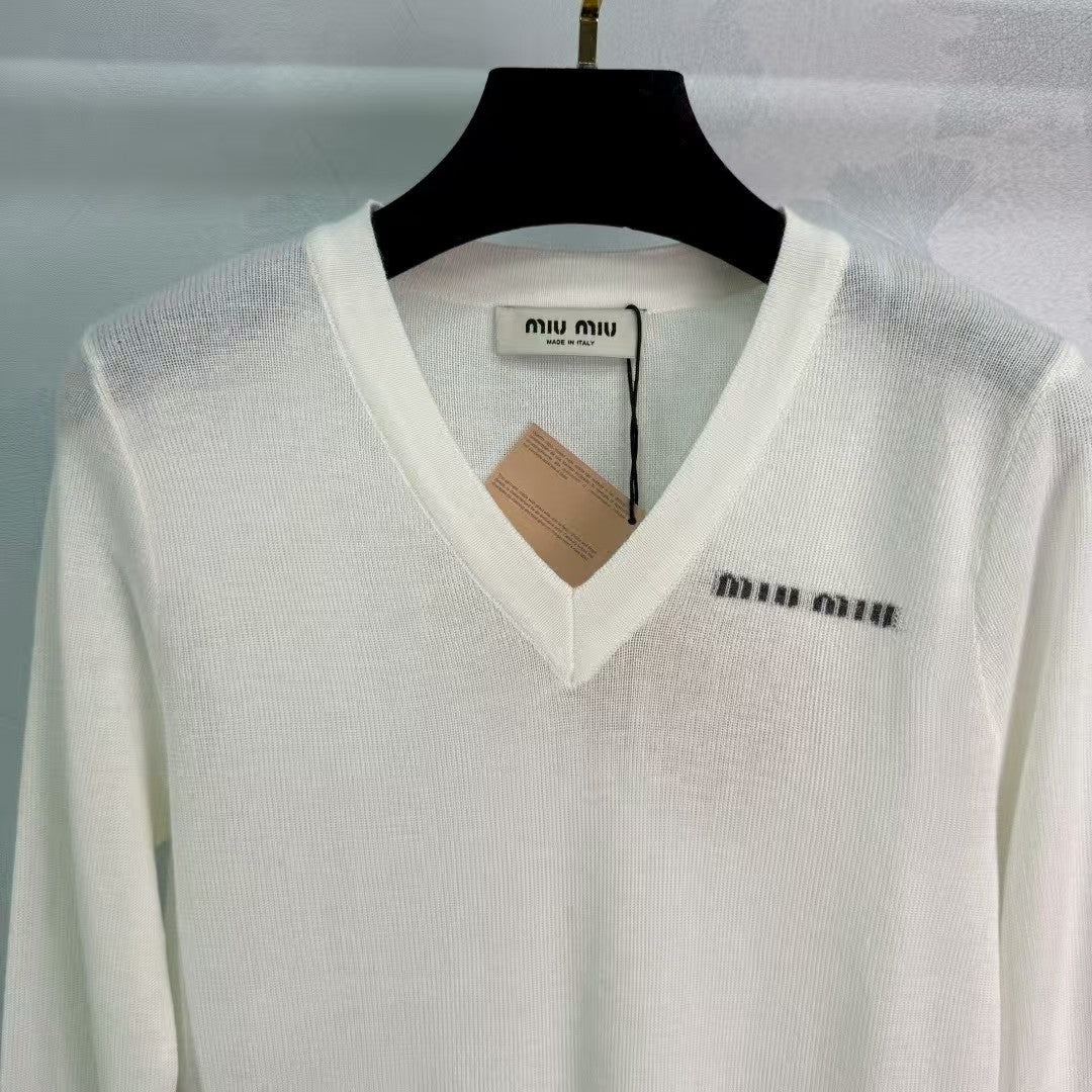 The latest collection for early fall 2025! V-neck long-sleeved knit top! Custom wool knit material, skin-friendly and delicate. The V-neck knit top cut reveals the neckline and exudes elegance. Crochet letter embellishment on the chest adds beautiful details. Simple design, easy to wear. Fashionable short design. Layered with American retro aesthetics, it looks playful and youthful when worn alone!