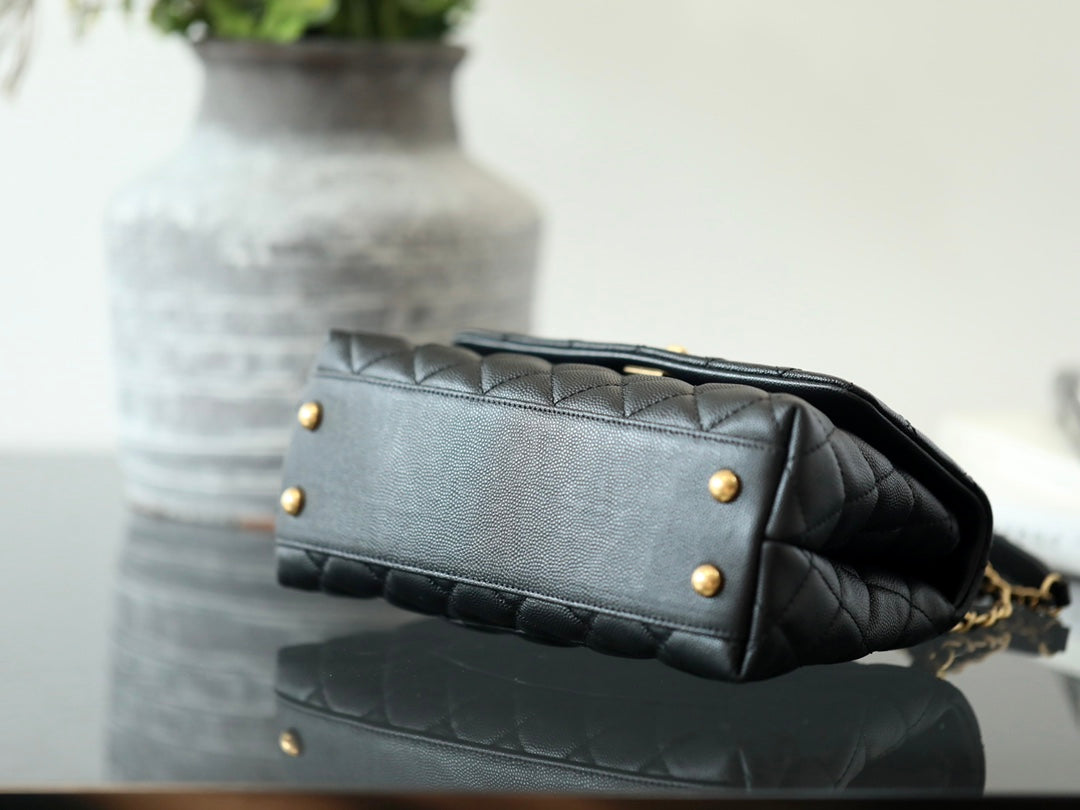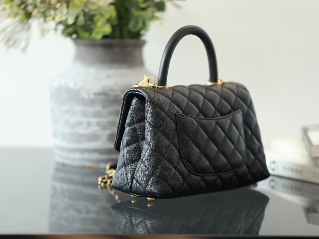 Handle Flap Quilted Caviar Gold-tone small Black