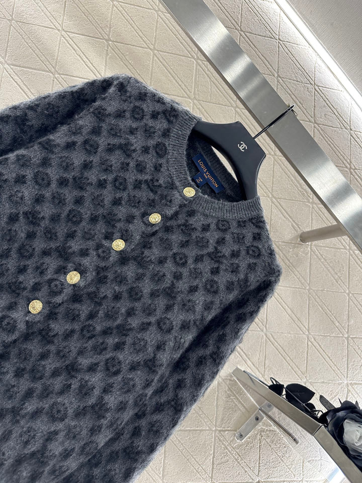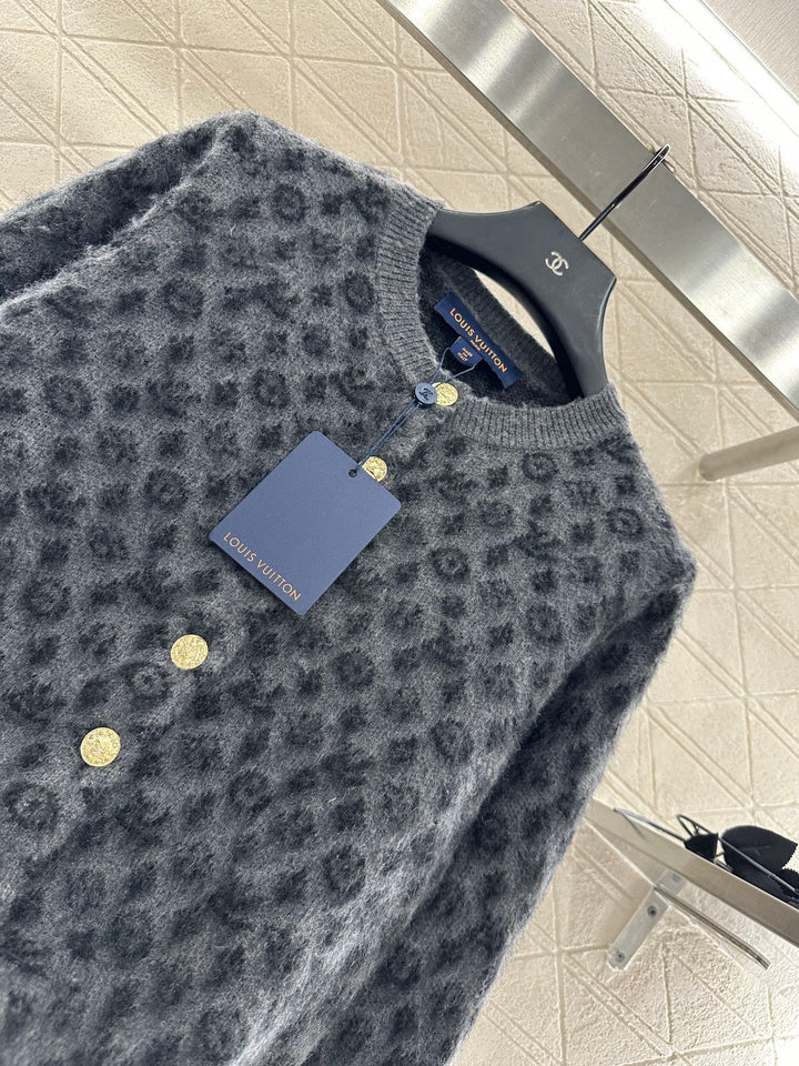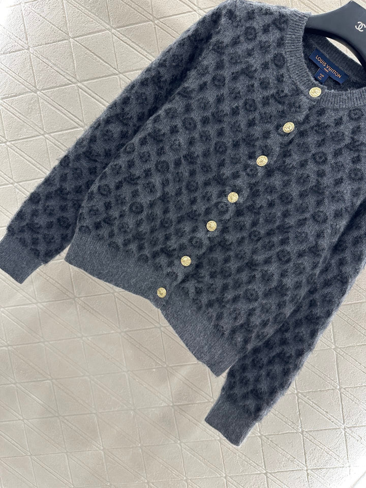 Customized YB mohair ➕ Wool yarn weaving with delicate texture, comfortable to wear, round neck knitted cardigan cut, all body clover logo ➕ The letter jacquard distribution is combined with edge wrapping to create a collision with the same color scheme. The elastic fabric fits the body shape and makes it look slimmer. The front placket is decorated with a round buckle and engraved logo to showcase the brand's tone and versatility. The style is not picky about age, skin tone, and looseness. The upper body is fashionable and stylish.