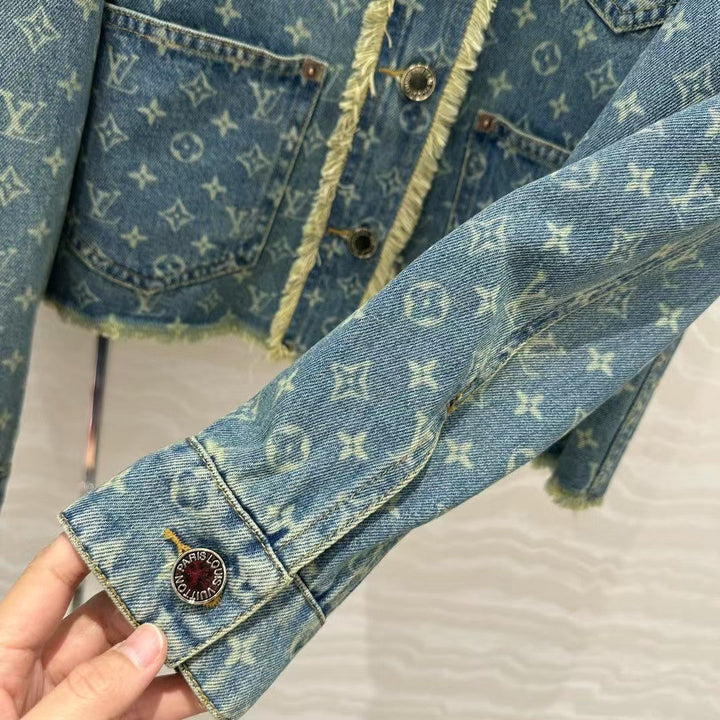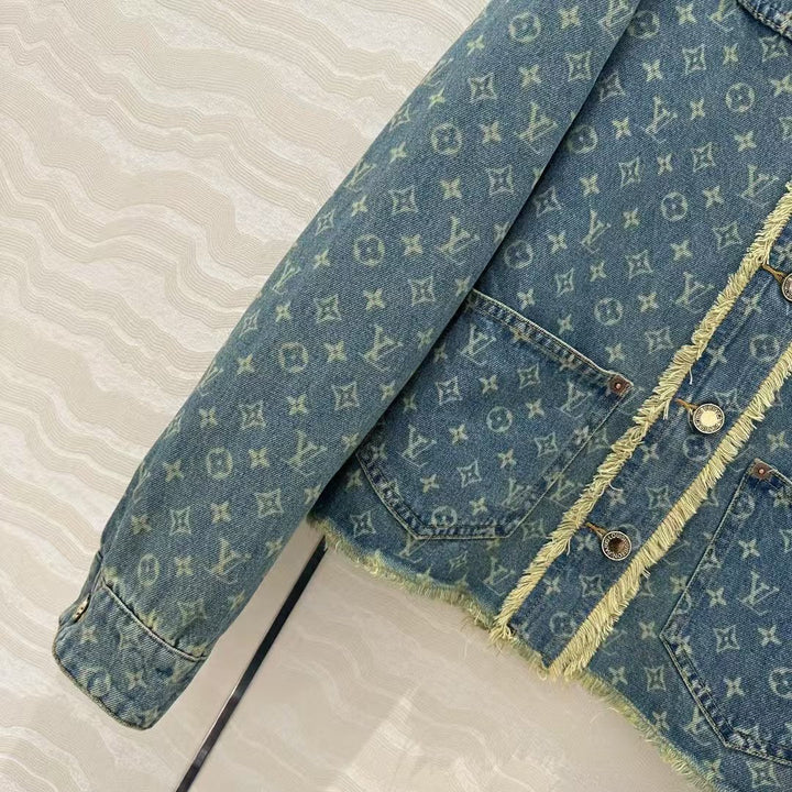 Jacquard denim jacket! Embroidered gold label retro washed blue denim hair edge craftsmanship! Imported denim with full bones and customized active washing craftsmanship, it's a blast to wear! Classic H version is not picky and versatile and fashionable! It's super slimming! Imported washed denim fabric has a strong and stylish texture!