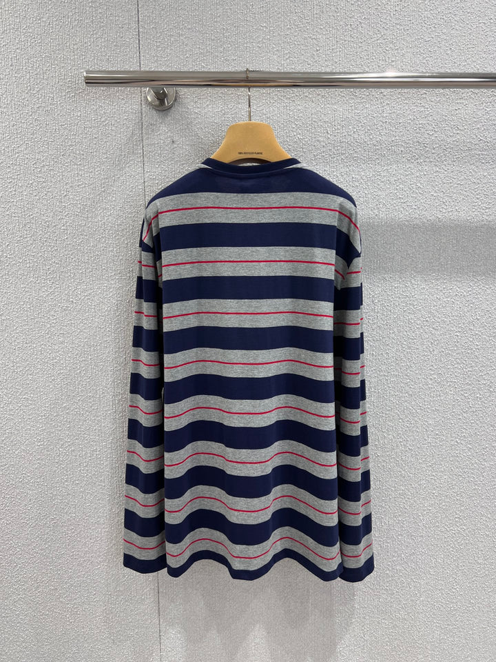 All cotton material is breathable and comfortable, with a loose long sleeved cut that presents a casual and lazy wearing style on the upper body. The blue and gray stripes are staggered in thickness, and the collar is in the same color scheme with edging to increase the beauty of the outfit. It is fashionable and fashionable when worn alone. The upper edge of the chest pocket is embellished with a logo to highlight the brand style. It is made of heavy-duty pure cotton, comfortable and easy to wear. It is fashionable for all seasons. Size: SML