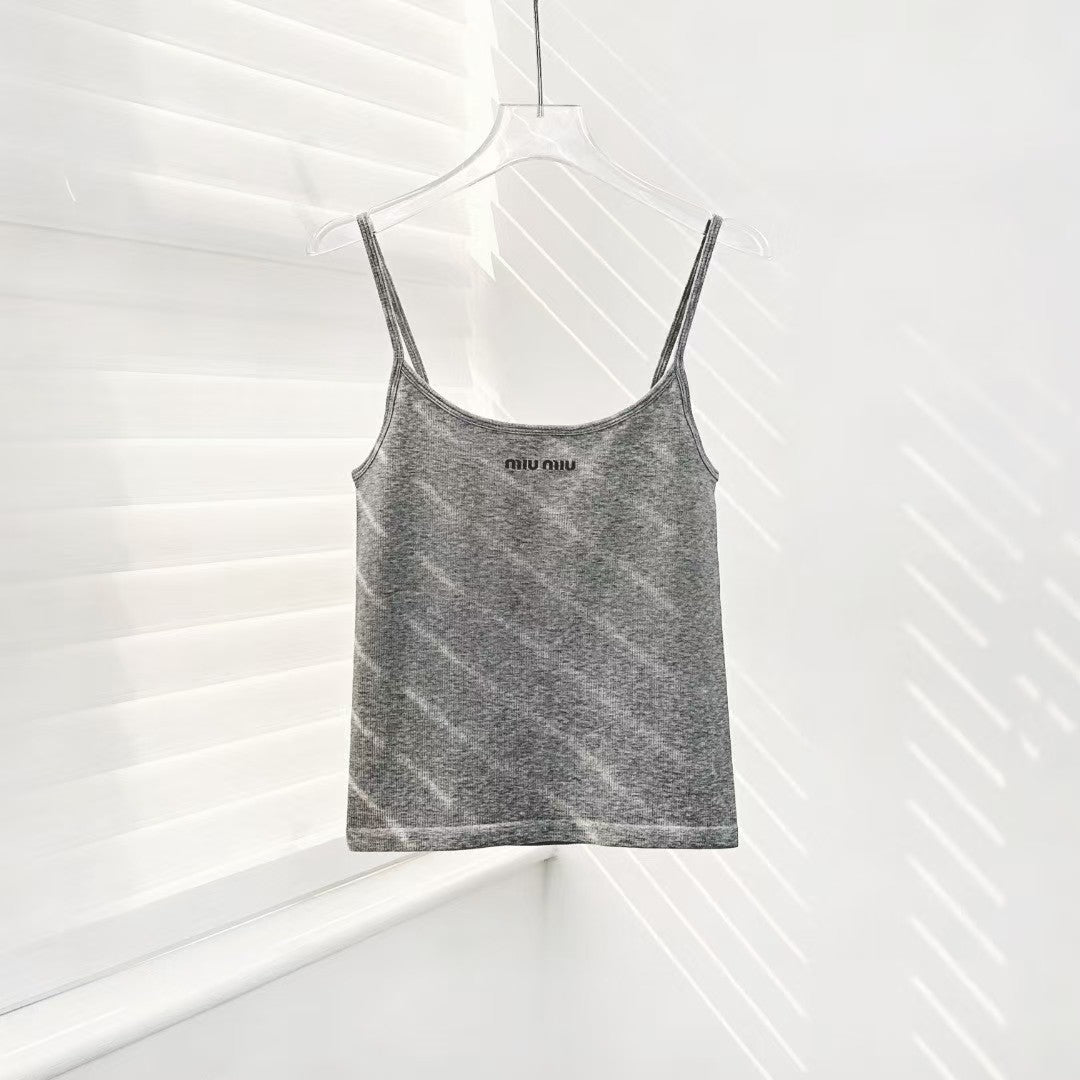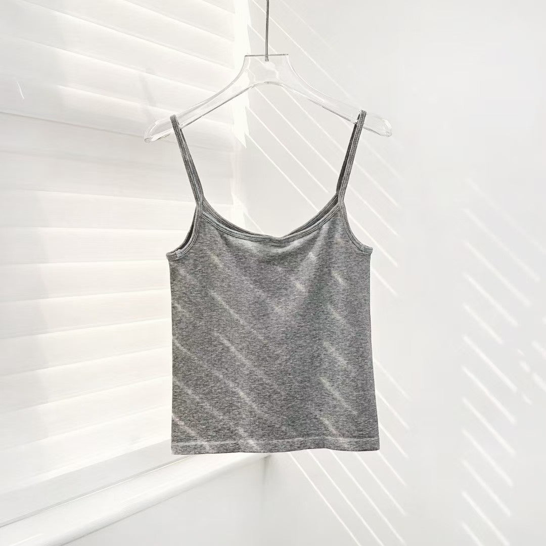 25ss new in early spring! Seamless knitted logo embroidered suspenders, logo embroidery on the chest, slim strap design, slim fit, covering the breasts, perfect for layering, blended with yarn mixed color effect and jacquard logo details, showing a versatile and youthful look, can be matched or in the same color
