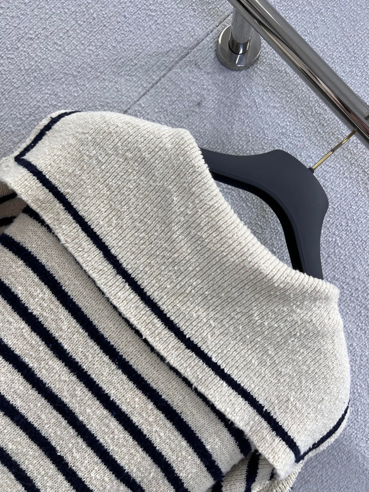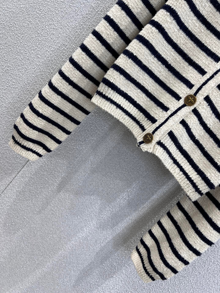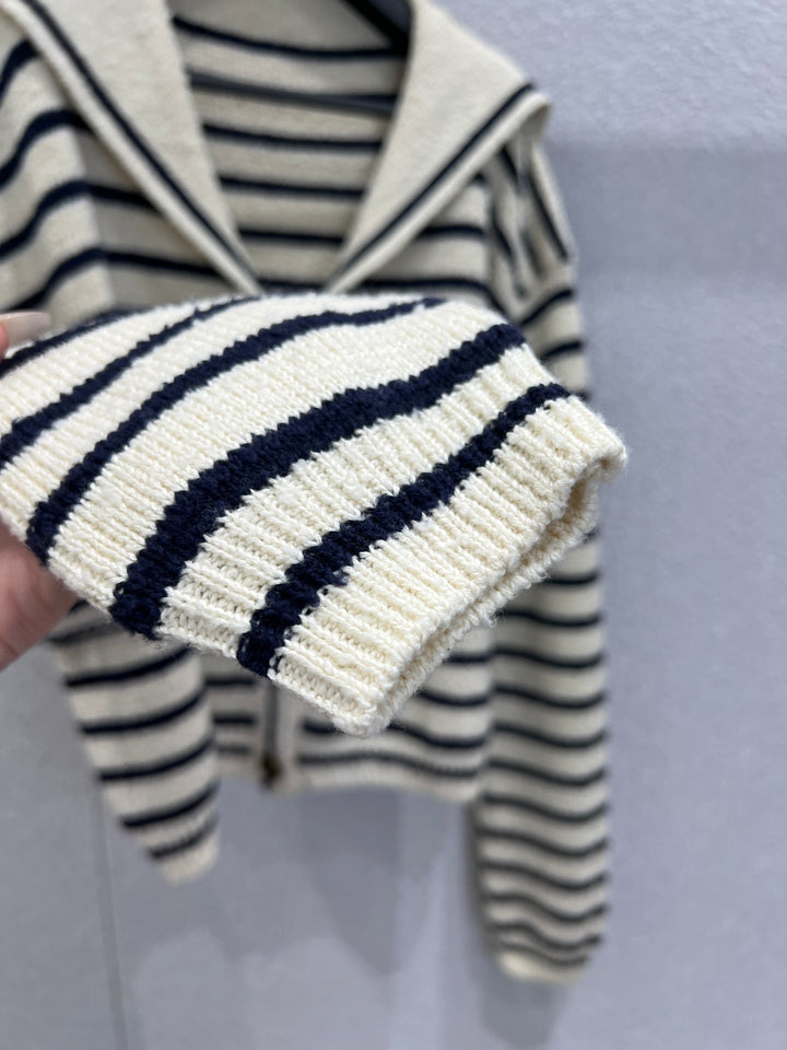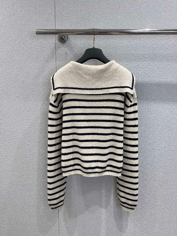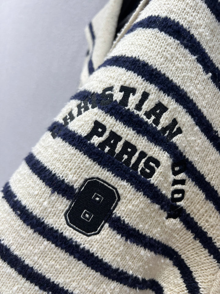26Ss early spring new striped embroidered navy neck knit sweater