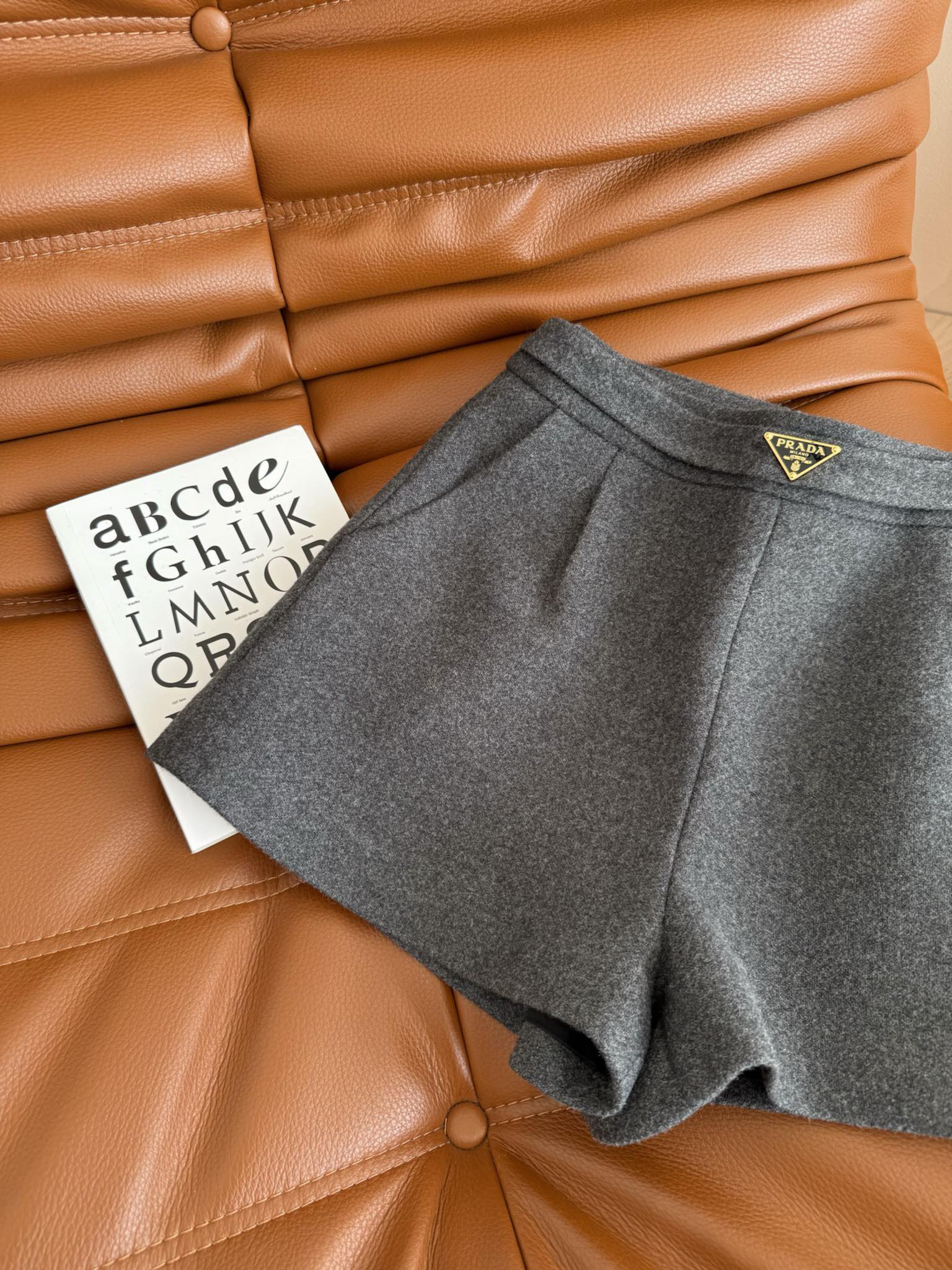 Triangle logo decorated woolen shorts