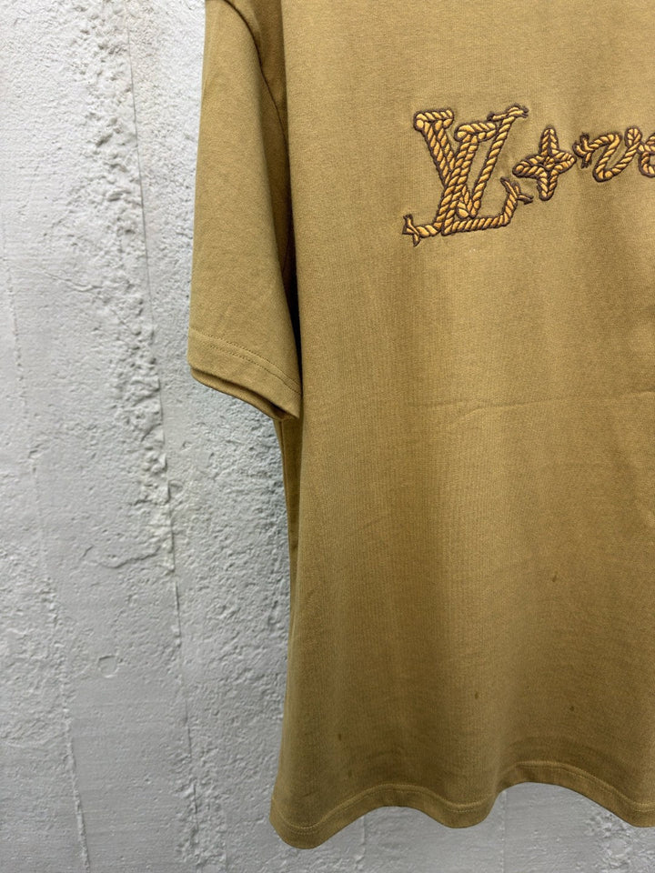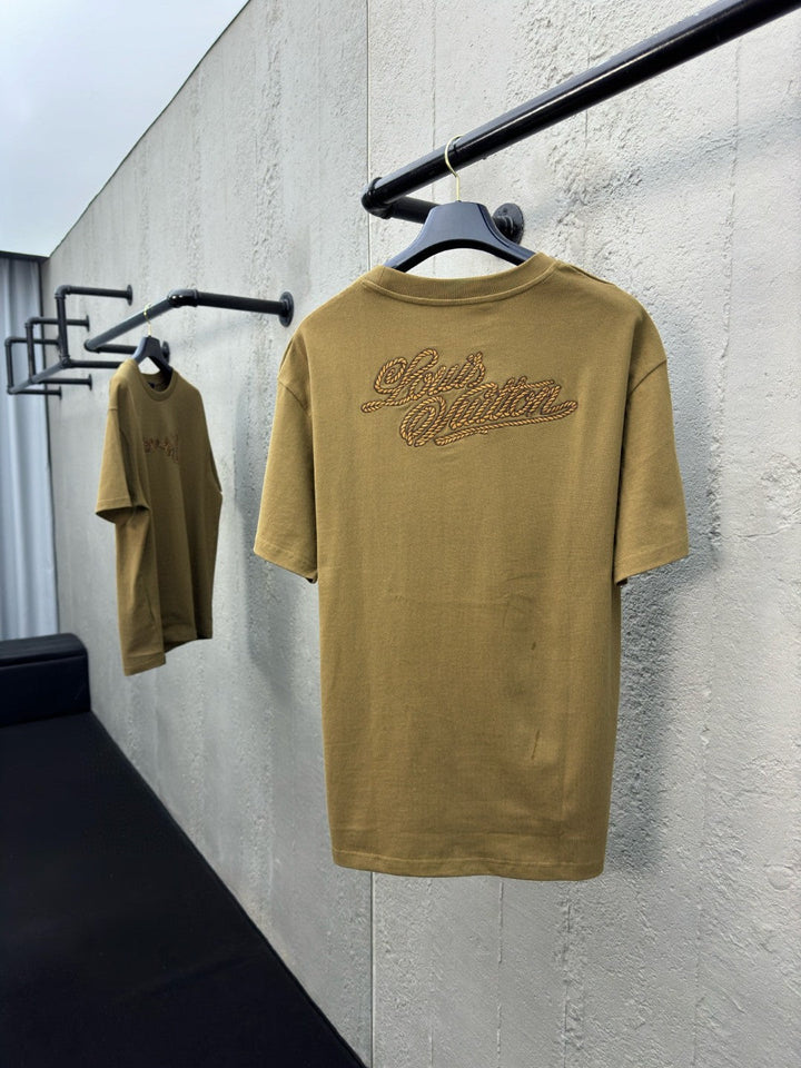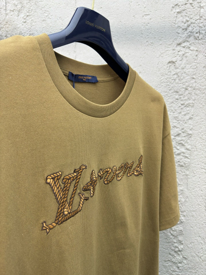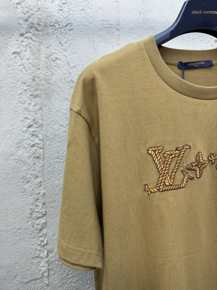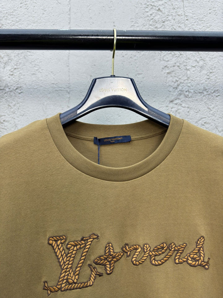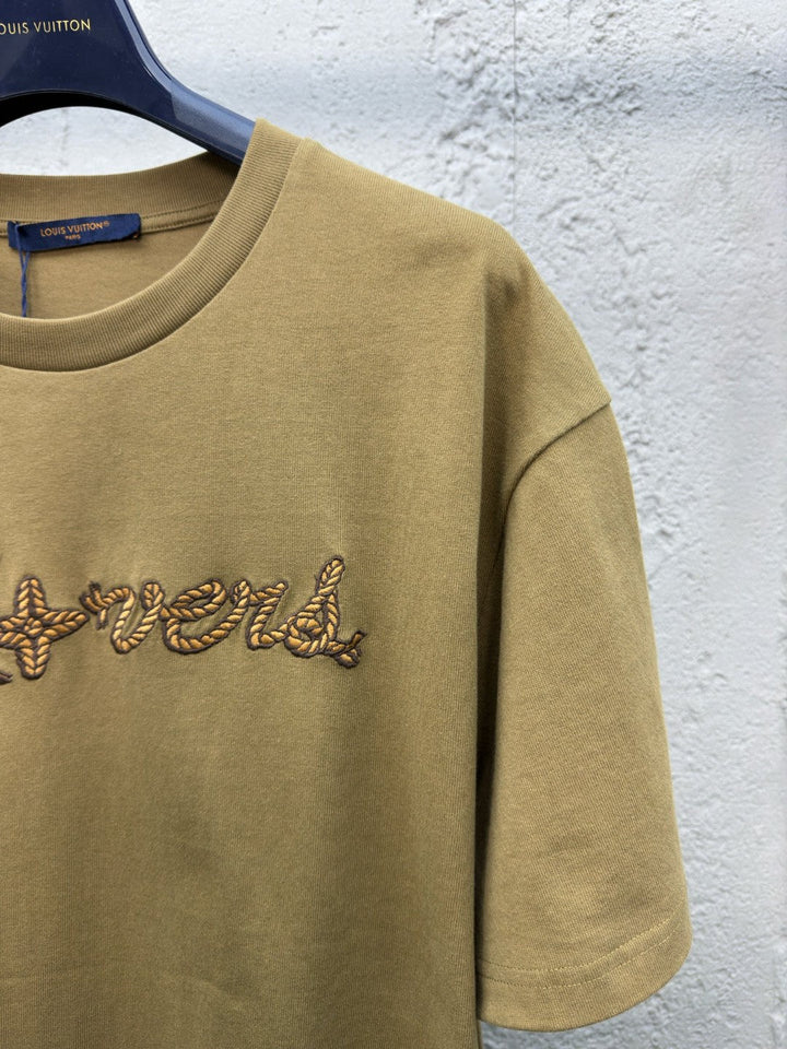 Lace-up letter embroidered short sleeves