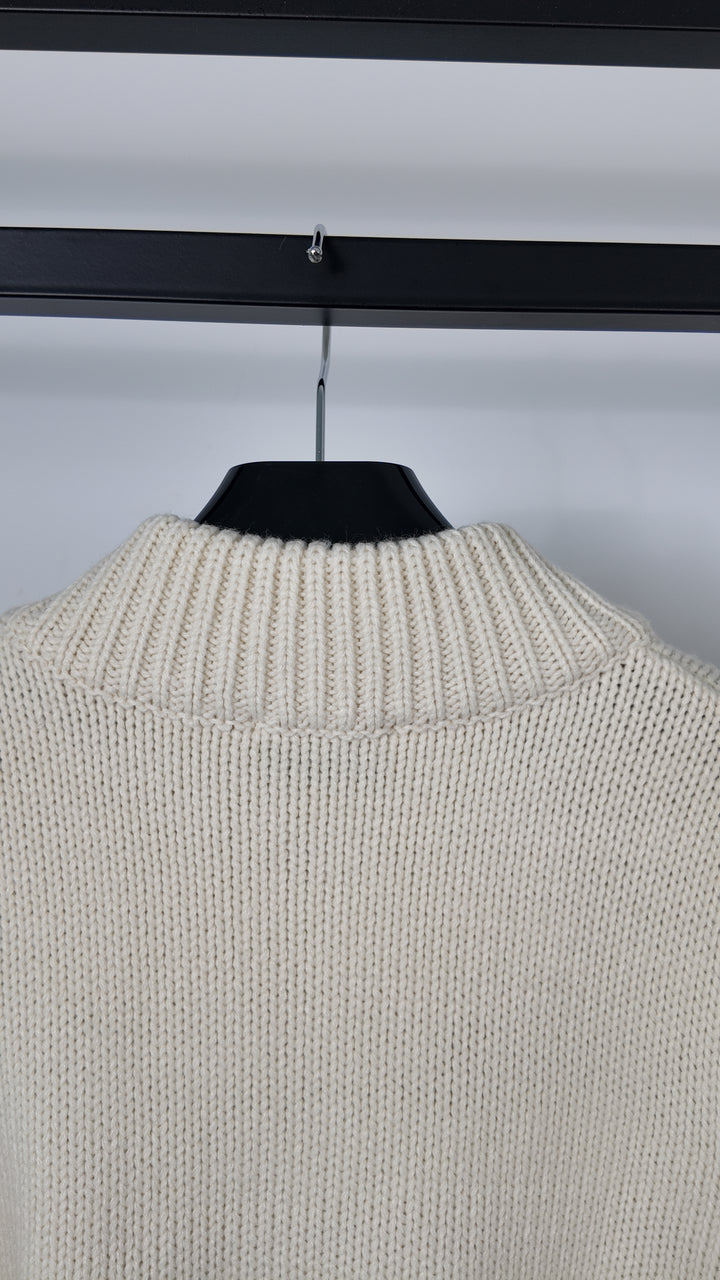 A sweater with a milky and gentle texture, with a touch of girlishness and temperament. Customized metal buttons for mold making! Jacquard design, paired with striped walking pants, looks very eye-catching all autumn!