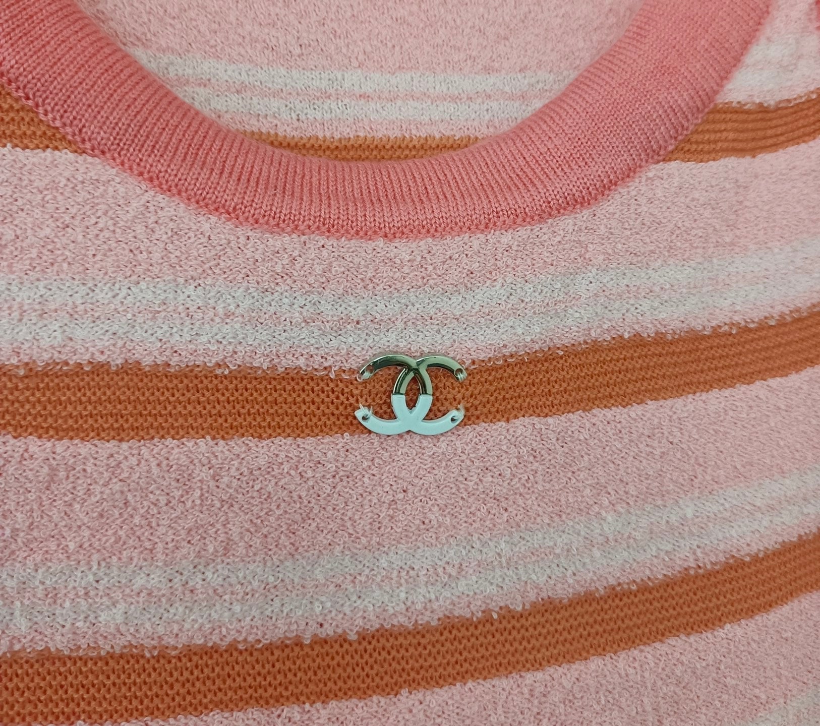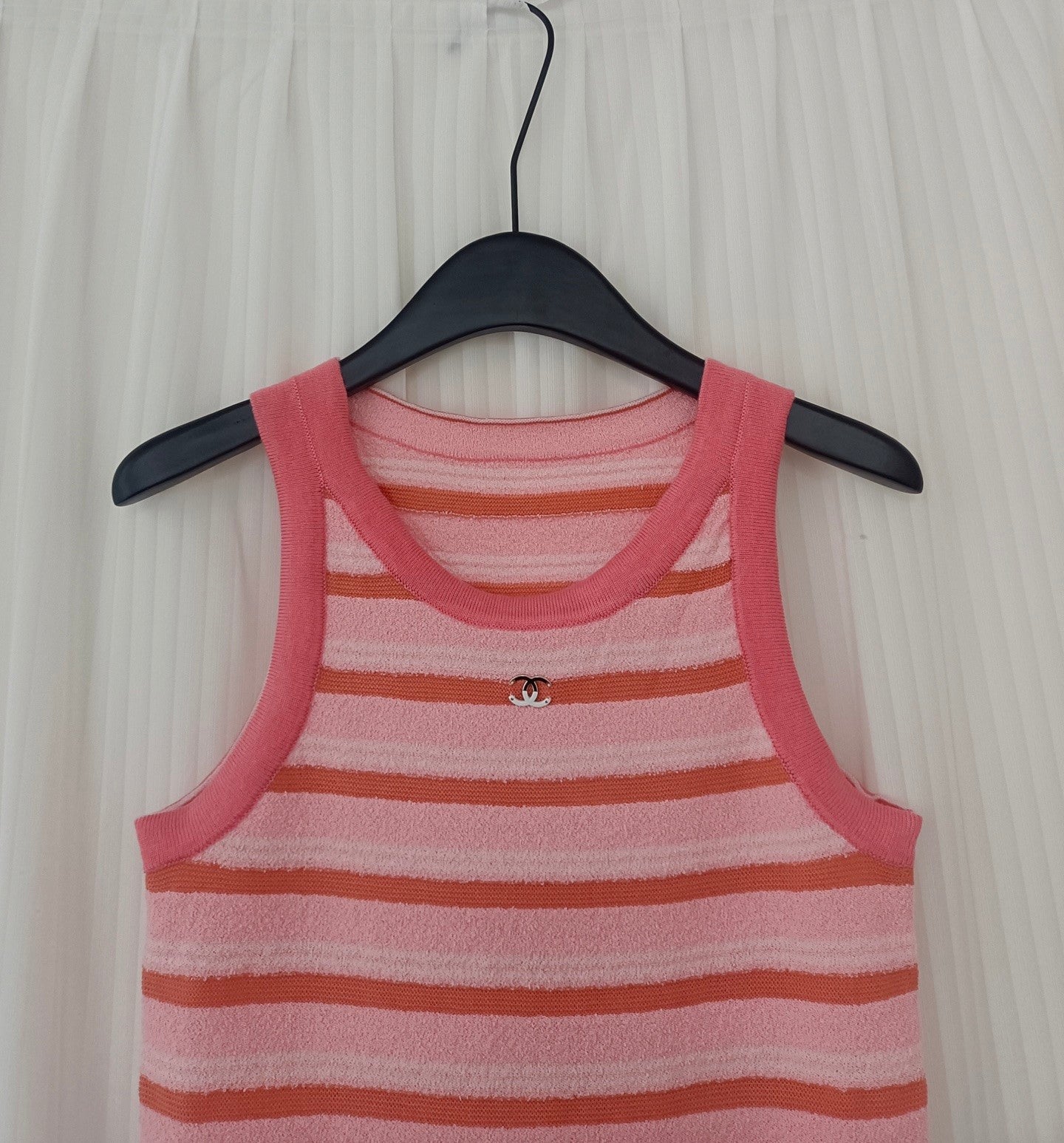 This knit tank top features a front gradient metallic letter logo combined with bold stripe detailing, offering a contemporary and dynamic aesthetic. Crafted from a comfortable knit fabric, it provides a sleek fit and subtle shine, making it ideal for layering or standalone wear in modern casual or sporty outfits.